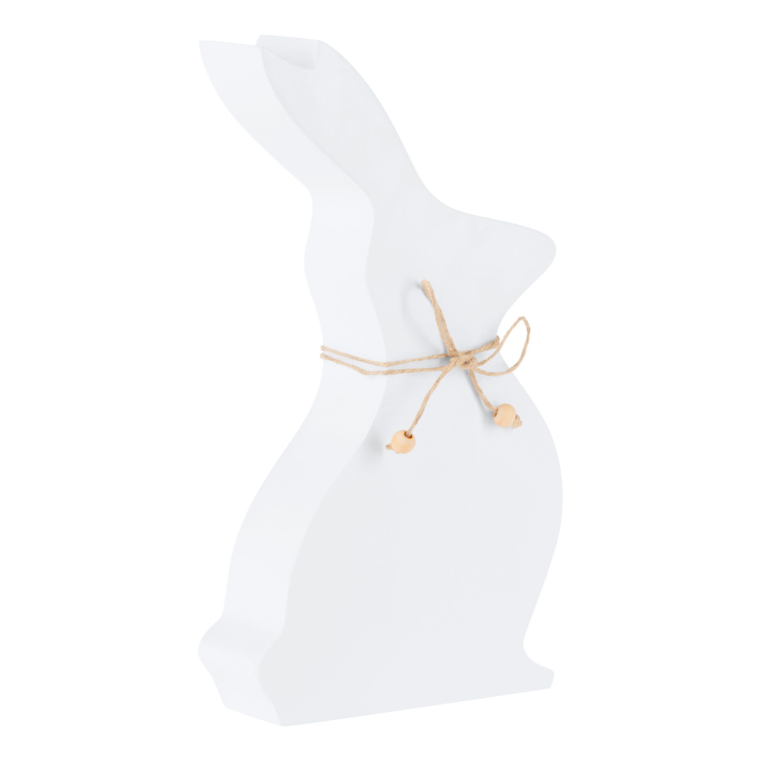 • Der Holzhase aus weißem Mangoholz trägt eine hübsche Juteschleife mit Holzperlen um den Hals; Diese liebevollen Details verleihen der Osterdekoration einen besonderen Charme