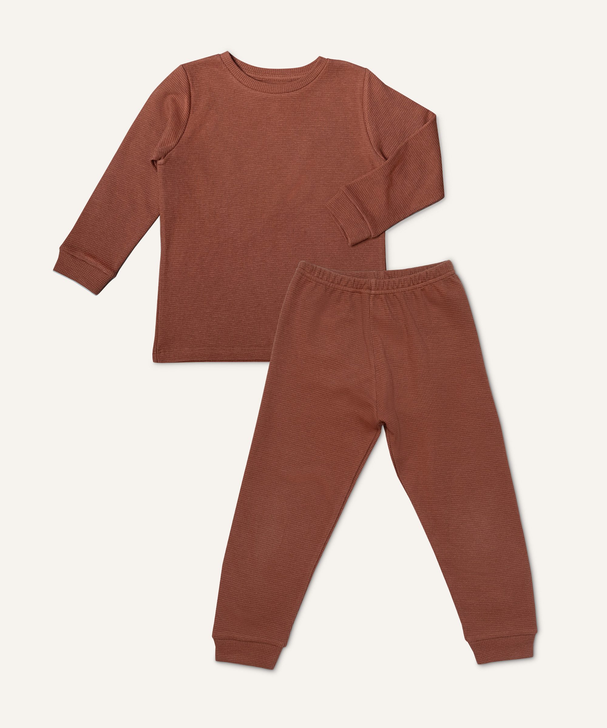 Die hochwertige Bio-Baumwolle ist mit einem Flächengewicht von 220 g/m² (Interlock und Rippe) bzw. 250 g/m² (Waffel) besonders formstabil. Der pflegeleichte Pyjama für Kinder ist waschbar bei 30 °C.