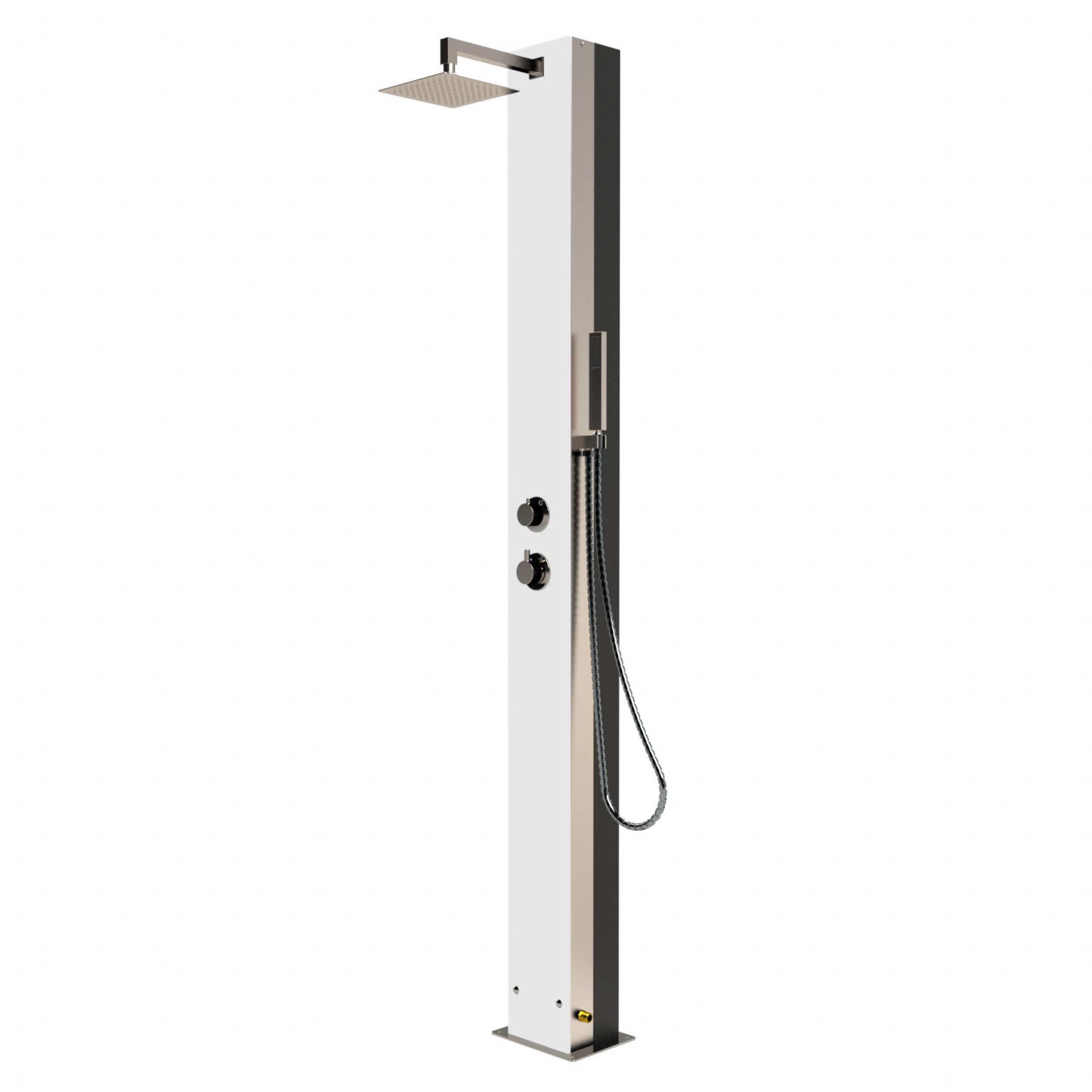 Gartendusche Eichenwald Ideal Außendusche Tobago Pooldusche Edelstahl Glas weiß