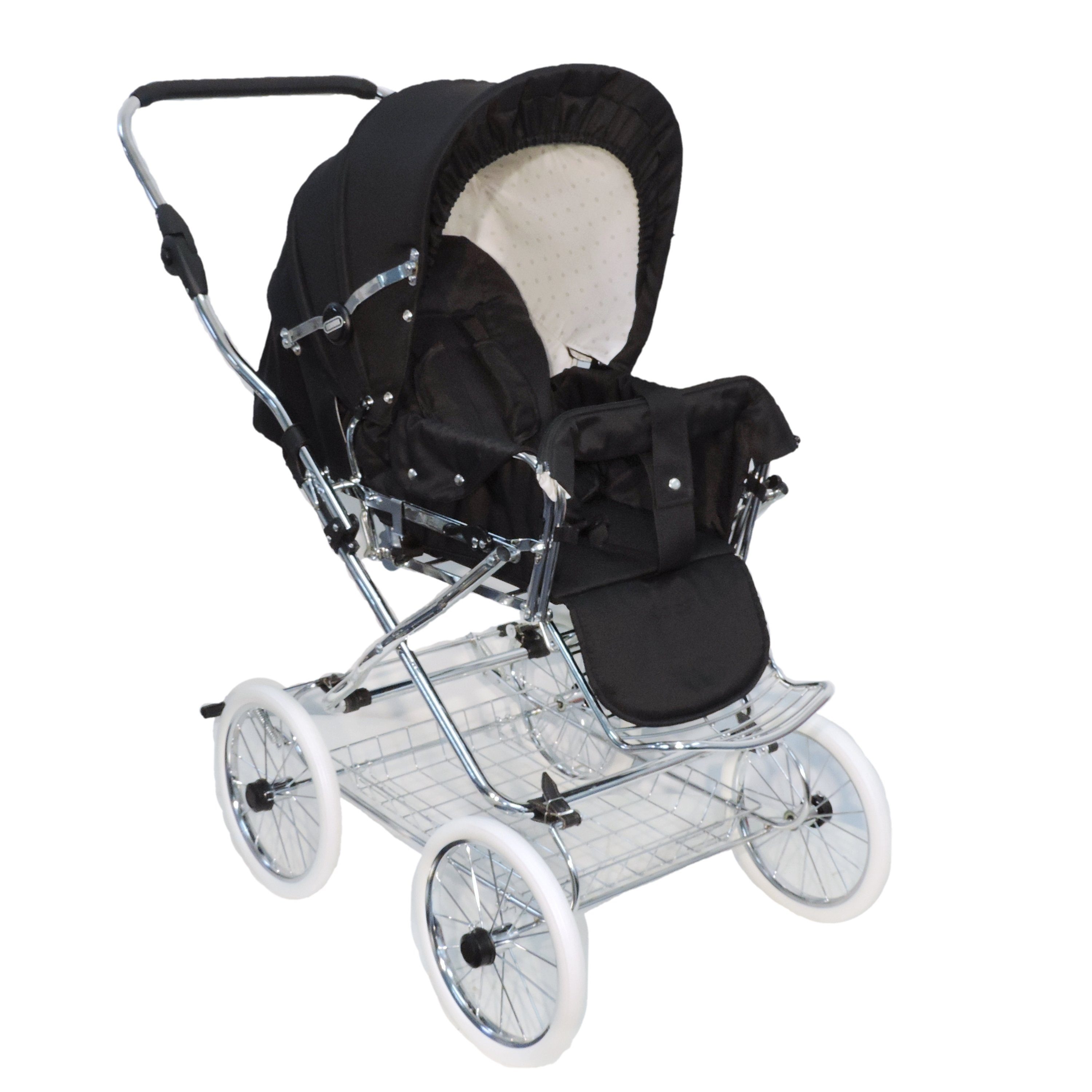 Ausstattung | weiche Lederriemenfederung höhenverstellbarer Griff mehrfach verstellbarer Sitz Liegefunktion Blickrichtung wechselbar am Stück zusammenlegbar Spielbügel klappbar Bügel-/Klapptrittbremse EVA-Vollmaterial-Räder (weiß) |