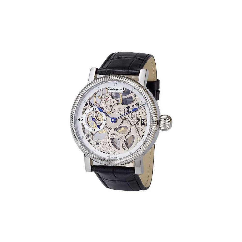 Diese mechanische Herrenuhr überzeugt durch ihr modisches und zugleich elegantes Design. Dazu verleiht das fast komplett skelettierte Zifferblatt dem eleganten Look der Uhr den letzten Schliff. Lediglich der schmale weiße Rand mit den arabischen Stunden-Ziffern ist noch zu sehen. Des Впередen befindet sich ein dezentral eingelassenes Sekundenzifferblatt bei “9 Uhr“. Das Gehäuse ist aus hochwertigem, massivem Edelstahl hergestellt. Auf der Rückseite der Uhr ist ein Glasboden, so dass man das Uhrwerk auch von dieser Seite arbeiten sehen kann. Das Echtlederarmband mit Krokoprägung gewährt einen angenehmen Tragekomfort und kann mit einer Dornschließe sicher verschlossen werden. Der angegebene Prüfdruck (Wasserdichtigkeit) beträgt 5 ATM, und sichert eine gute Alltagstauglichkeit.
