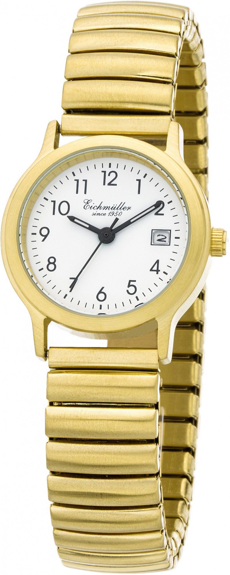 Diese praktische und klassische Damenuhr überzeugt mit ihrem schlichten Design. Das Ziffernblatt, mit seinen kontrastreichen Indexen ist in einem 26 mm durchmessenden Gehäuse gebettet und wird von einem speziell gehärteten Mineralglas vor Umwelteinflüssen geschützt. Durch das elastische Armband lässt sich die Uhr besonders leicht An- und Ablegen und kann individuell gekürzt werden. Auf der 3 Uhr-Position ist eine kleine Datumsanzeige integriert, die den aktuellen Kalendertag wiedergibt. Sowohl das Gehäuse, als auch das Zugband bestehen aus hochwertigem Edelstahl. Der angegebene Prüfdruck (Wasserdichtigkeit) beträgt 5 ATM und sichert eine gute Alltagstauglichkeit.