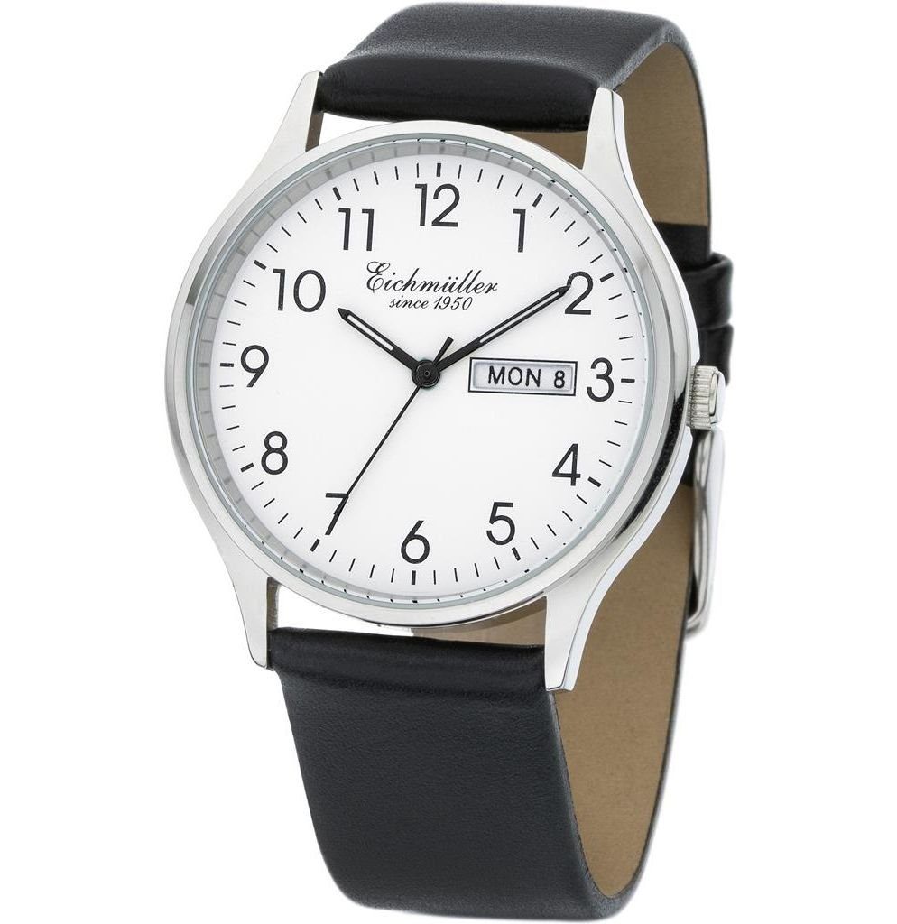 Diese Herrenarmbanduhr zeichnet sich durch ihr klassisches und schlichtes Design aus. Das Zifferblatt ist kontrastreich gestaltet und sorgt für optimale Ablesbarkeit. Bei der 3 Uhr Position ist eine Wochentags- und Datumsanzeige. Das Zifferblatt wird mit einem speziell gehärteten Mineralglas vor äußeren Einwirkungen geschützt. Das Gehäuse besteht aus hochwertigem Edelstahl. Ein weiches Lederband garantiert höchste Komfortabilität am Handgelenk. Der angegebene Prüfdruck (Wasserdichtigkeit) beträgt 5 ATM und sichert eine gute Alltagstauglichkeit.