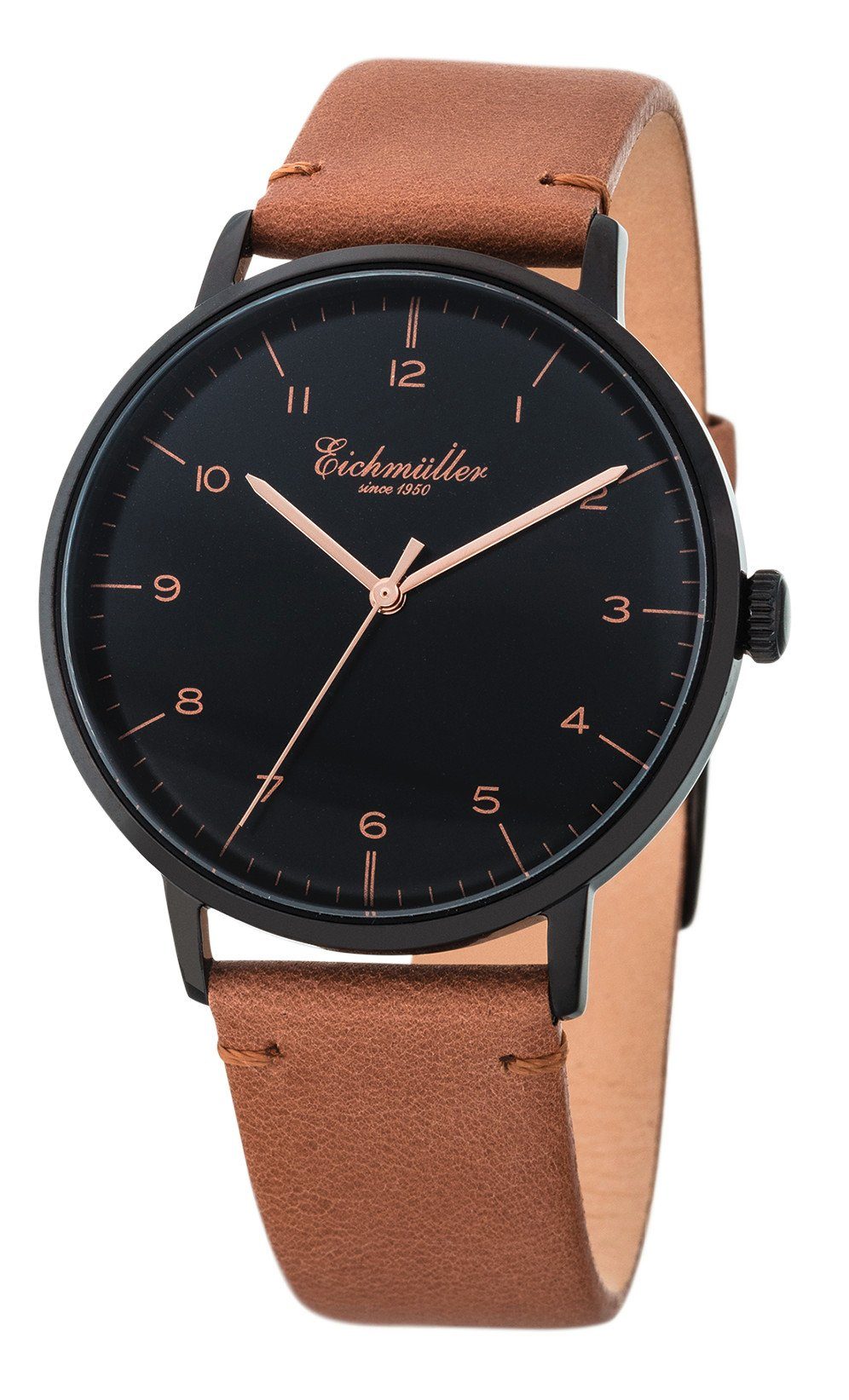 Diese Armbanduhr von Eichmüller überzeugt durch ein minimalistisches Design kombiniert mit modernster Technik. Das Gehäuse ist poliert und aus 304 Edelstahl (mit hochwertiger IP-Beschichtung) gefertigt. Im Inneren der Uhr arbeitet ein präzises Quarzuhrwerk aus dem Hause Miyota, Kaliber 2036. Das leicht gewölbte Zifferblatt ist schlicht gehalten mit gut erkennbaren Zeigern und arabischen Zahlen. Das glatte und weiche Echtlederband mit Dornschließe bietet einen angenehmen Tragekomfort.