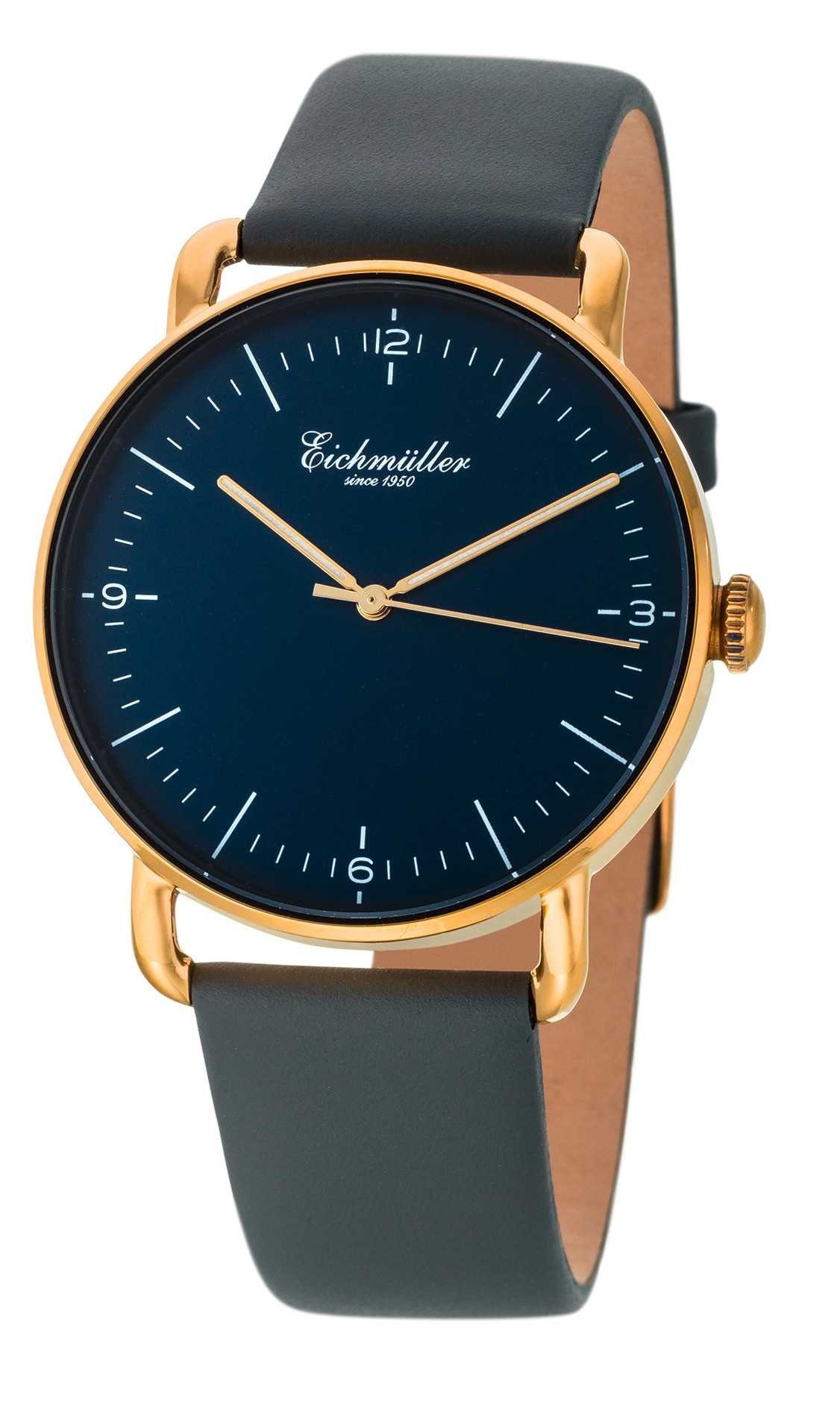 Elegante Herrenarmbanduhr von Eichmüller. Das Quarzuhrwerk von Miyota arbeitet präzise. Die Uhr wird von einem gehärteten Mineralglas geschützt. Das Echtleder Uhrenarmband sorgt für einen angenehmen Tragekomfort und wird mit einer Dornschließe sicher verschlossen. Einfaches ablesen der Uhrzeit durch das schlichte Design. Das Gehäuse ist poliert (und hat eine hochwertige IP-Beschichtung). Zudem ist das Modell auf bis zu 5 ATM wasserdicht.