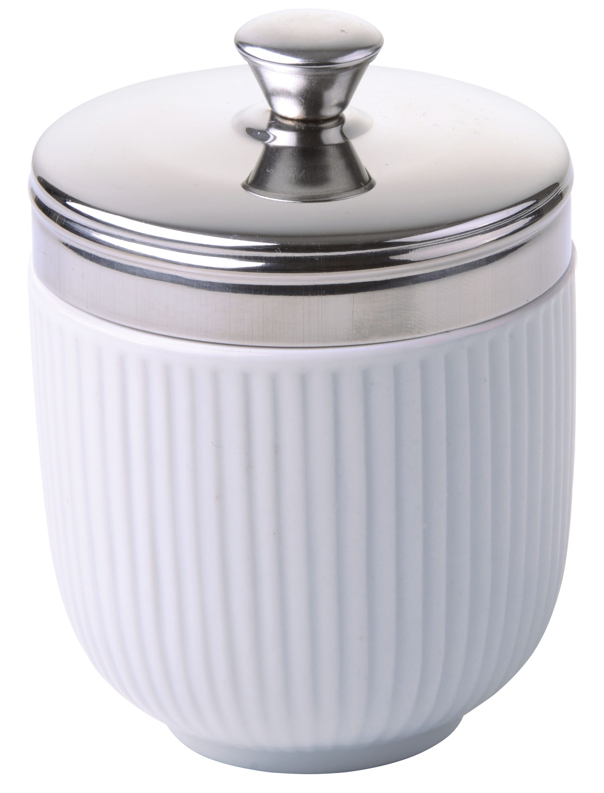 In England weit verbreitet: Der Egg Coddler ist ein Gefäß zum Erhitzen von Eiern, die mit Gewürzen und anderen Zutaten gemischt werden. Zur Herstellung des Coddled Egg wird das fein geriffelte Porzellangefäß innen mit Butter bestrichen. Das Ei wird aufgeschlagen oder verquirlt eingefüllt und Zutaten nach Belieben zugefügt. Beliebt sind z.B. Schinken, Tomaten, Zwiebeln, Feta, Spinat, Kräuter wie Schnittlauch und Salz, Pfeffer und andere Gewürze. Der Coddler kommt jetzt mit geschlossenem Deckel etwa 7-10 Minuten (je nachdem ob das Ei noch weich oder eher fest sein soll) in einen Topf oder eine Pfanne mit heißem, nicht kochendem Wasser. Dabei sollte das Gefäß stehen und aus dem Wasser ragen. Am Ende der Garzeit wird der Coddler am Knauf des Deckels mit einem Tuch oder Handschuh entnommen und geöffnet. Das fertige pochierte Ei kann jetzt direkt aus der Form gelöffelt werden, - dazu frischen warmen Toast oder Baguette essen!