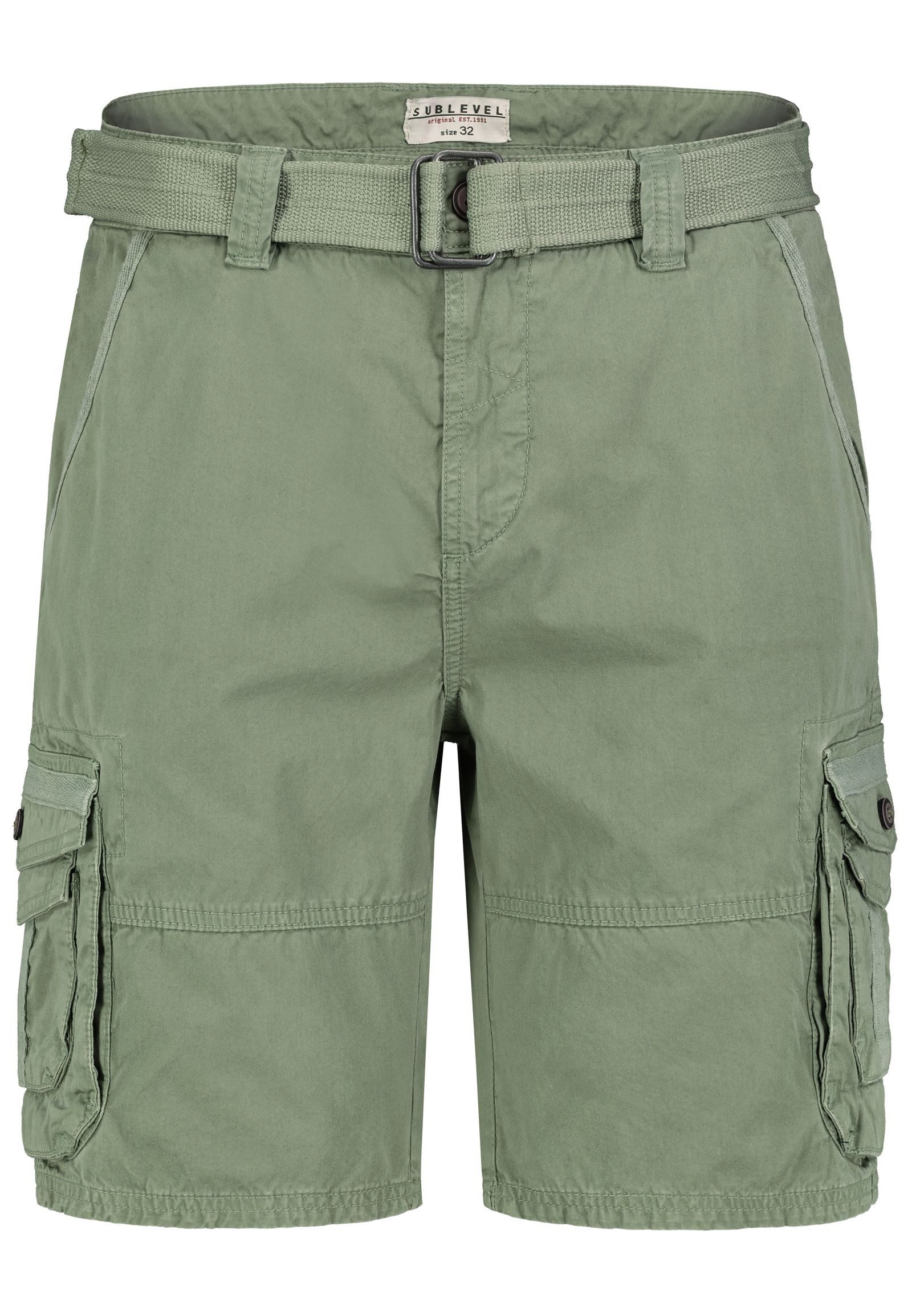 HAKA Cargo Bermuda mit Gürtel, zipfly, schräge Tascheneingriffe mit Herringbonetape, doppelt aufgTaschen auf SN mit Herringbonet., TN im VT, aufg. Taschen RT