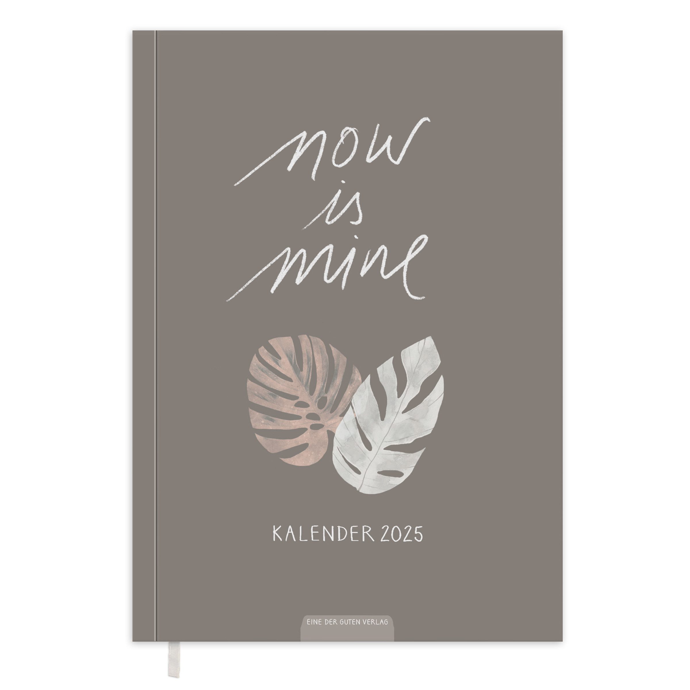 DAS BEKOMMST DU: A5 Kalender 2025 mit Wochenübersicht quer. 2 Seiten pro Woche, vertikale Spaltenaufteilung. Softcover mit Lesebändchen, 168 Seiten, 120 g FSC Papier, Beige