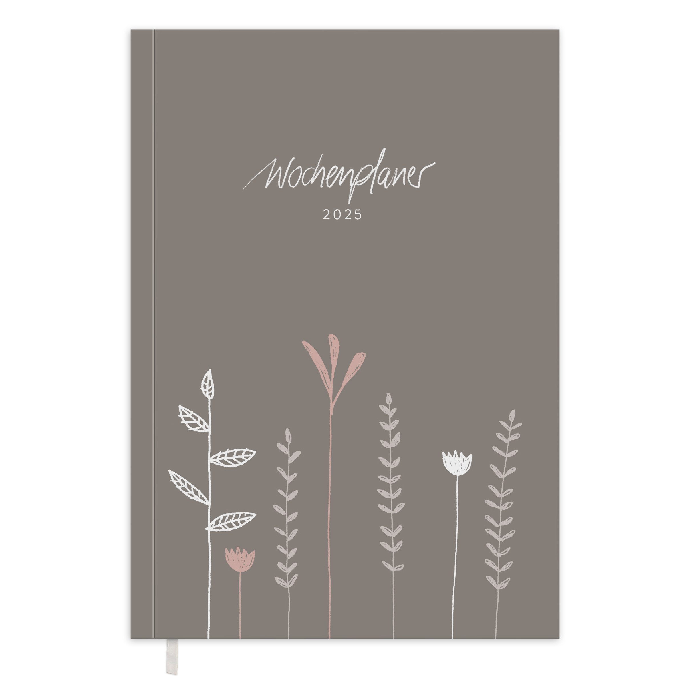 DAS BEKOMMST DU: A5 Kalender 2025 mit Wochenübersicht. Zwei Seiten pro Woche, 1 Doppelseite für Notizen alle 4 Wochen. Softcover mit Lesebändchen, 152 Seiten, 120 g FSC Papier.