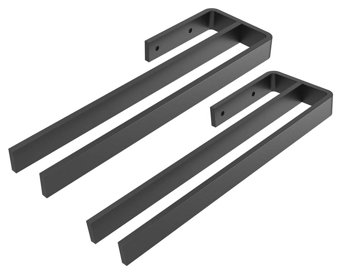 Mit seinem schwarz-matten Finish und zwei getrennten Armen ist dieser Bath-O-Line Handtuchhalter die perfekte Wahl für moderne Badezimmer. Die pulverbeschichtete Oberfläche wirkt edel und robust zugleich – perfekt kombinierbar mit schwarzen Badarmaturen.