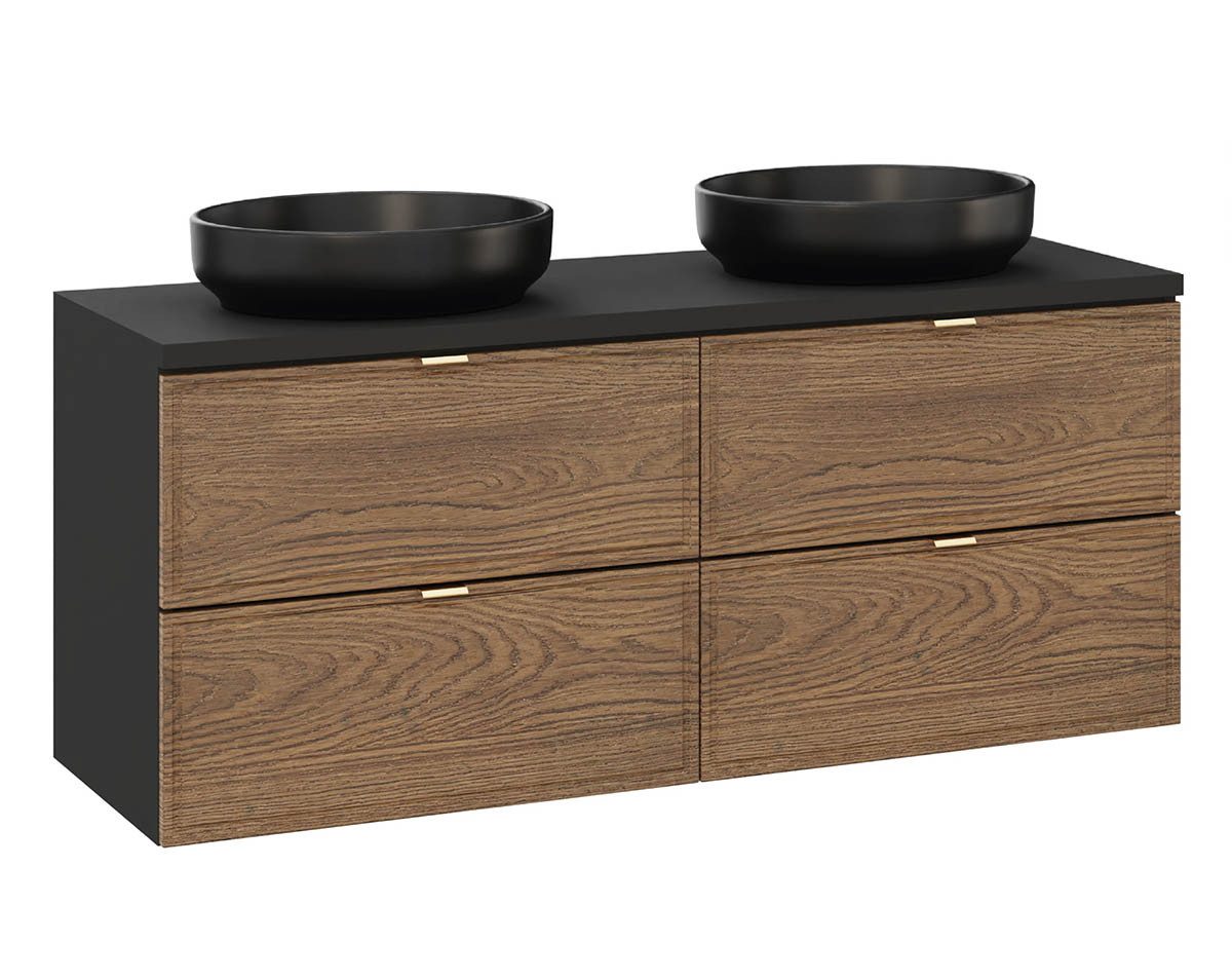 Set beinhaltet | 2x Waschtisch Unterschrank, Abdeckplatte & 2x Aufsatzbecken |