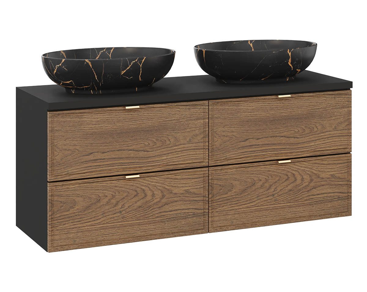 Set beinhaltet | 2x Waschtisch Unterschrank, Abdeckplatte & 2x Aufsatzbecken |