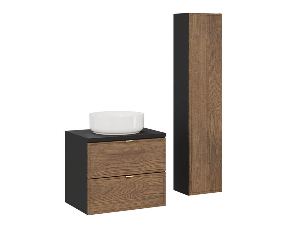 Set beinhaltet | 2x Waschtisch Unterschrank, Oberplatte & 2x Aufsatzbecken Keramik mattschwarz & LED Spiegel |