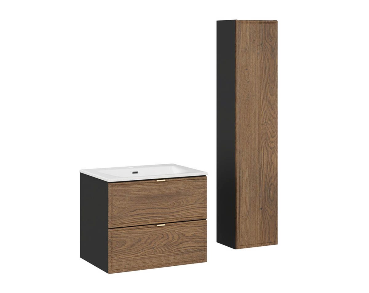 Die "TALINA" Casella-Kollektion vereint klassische Eleganz mit modernem Stil. Die Fronten sind dezent gestaltet mit gefrästen Rahmen in dunklem Casella Eichendekor und spiegeln damit die natürliche Schönheit von Holz wider, während die mattschwarzen Korpusse den Möbeln einen moderne Ausdruck und Stärke verleihen.