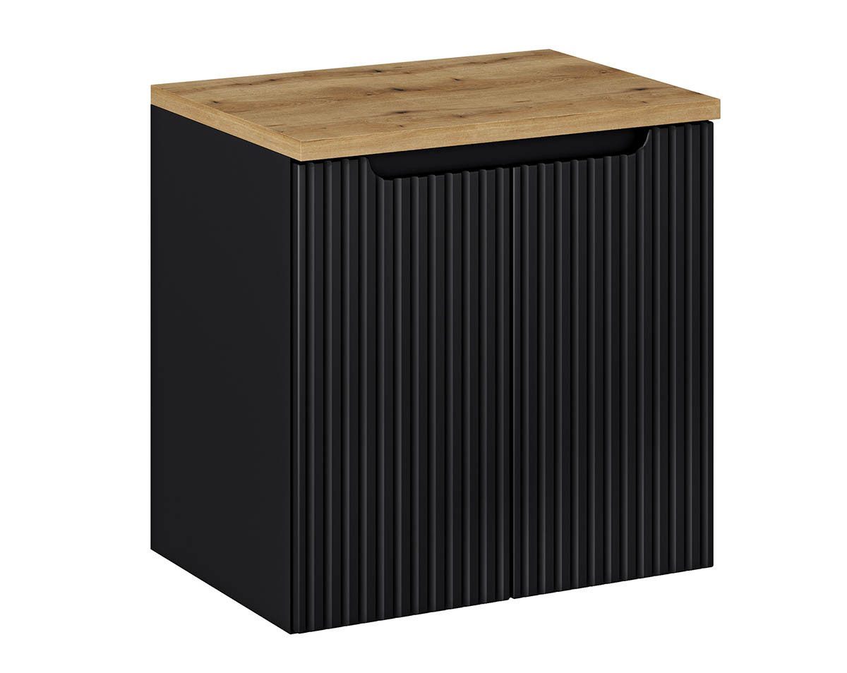 Waschtisch-Set Bad Waschplatz ILUNA Black 60cm mit Türen, zum Unterbau OAK, schwarz