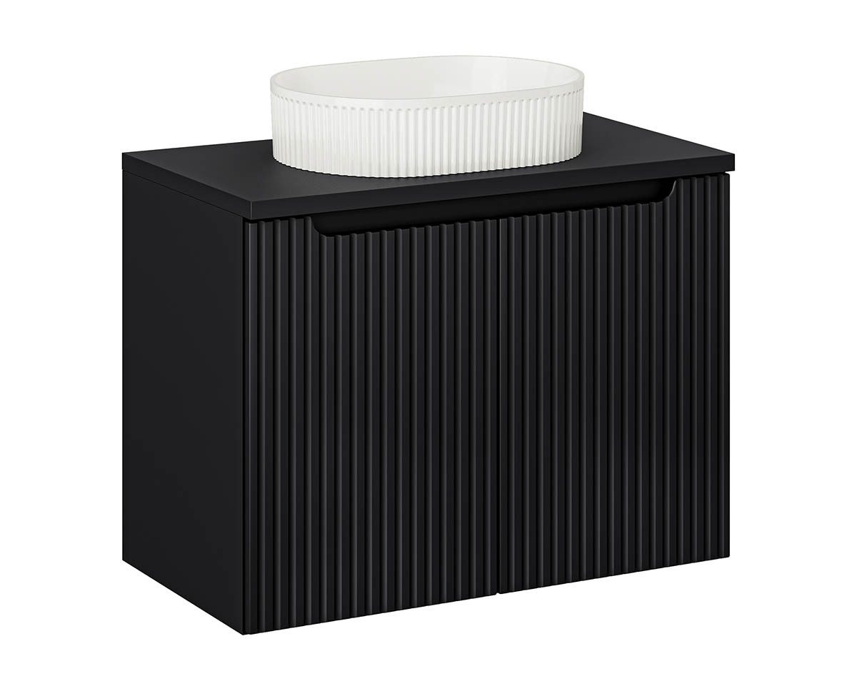 • Bad Waschplatz ILUNA Black 80cm mit Türen | Becken Riffel | schwarz