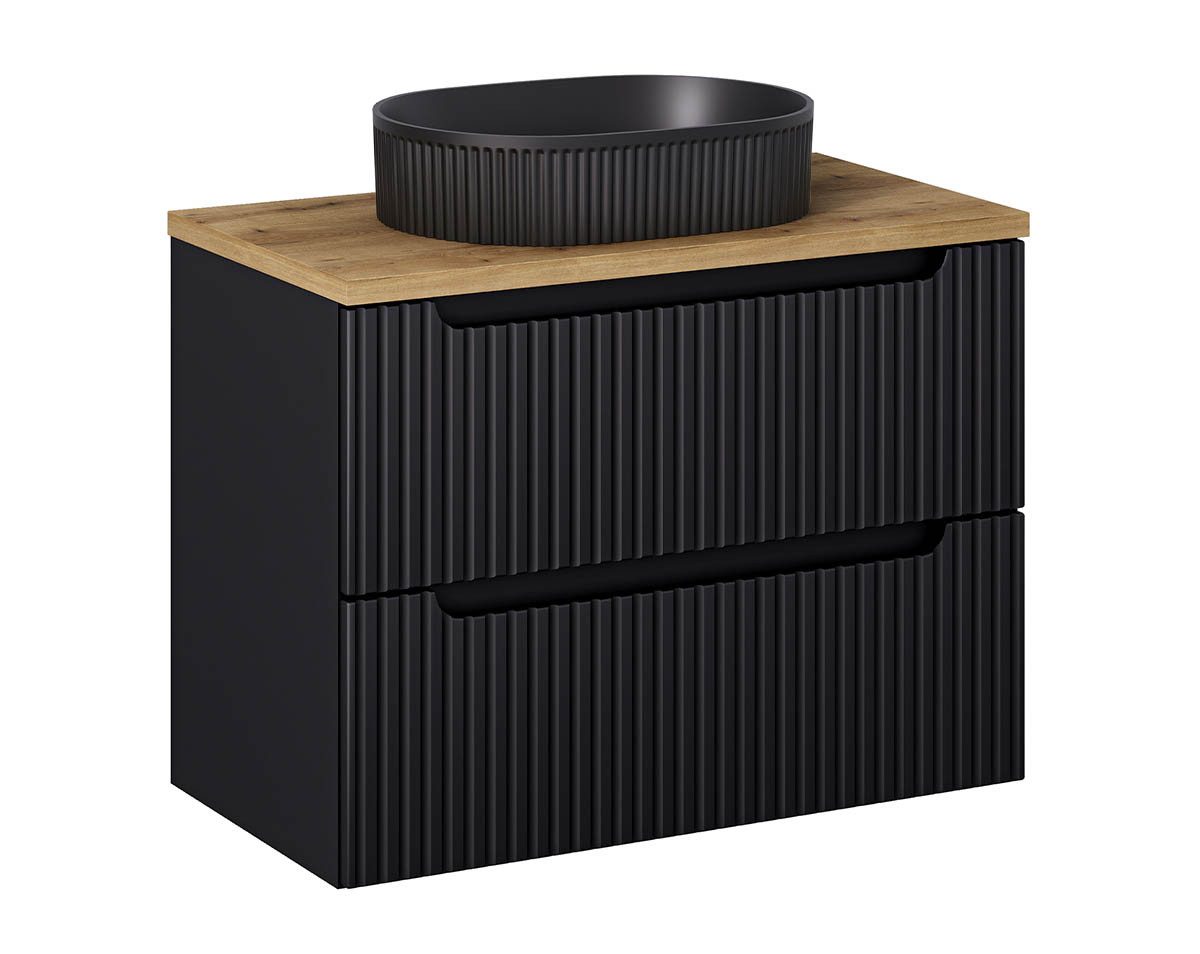Waschtisch-Set Bad Waschplatz ILUNA Black 80cm Schubfach, Becken rif oak, schwarz