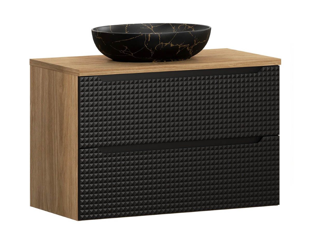 Die Fronten der Möbel sind mit dreidimensionalen, quadratischen Pyramiden verziert, wodurch ein faszinierendes Muster entsteht, das jedem Stück Tiefe und Charakter verleiht. Die gesamte Kollektion ist FSC-zertifiziert, die Fronten sind aus hochwertigem MDF gefertigt, was Langlebigkeit und Solidität gewährleistet, der Korpus dieses Waschtisches ist aus laminiertem Holzwerkstoff. Auch als Set und in unterschiedlichen Вариантыn erhältlich.