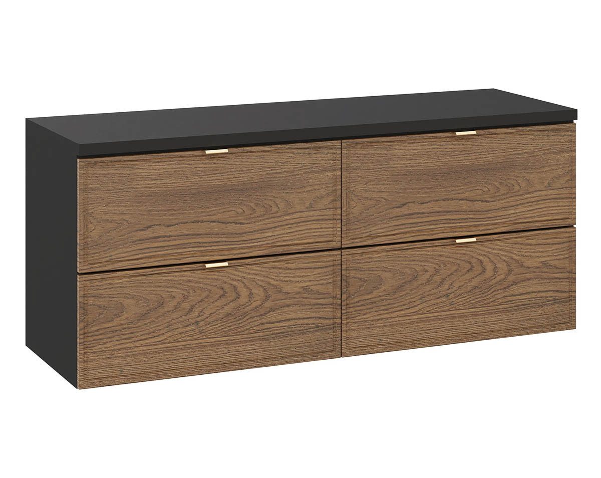 Die "TALINA" Casella-Kollektion vereint klassische Eleganz mit modernem Stil. Die Fronten sind dezent gestaltet mit gefrästen Rahmen in dunklem Casella Eichendekor und spiegeln damit die natürliche Schönheit von Holz wider, während die mattschwarzen Korpusse den Möbeln einen moderne Ausdruck und Stärke verleihen.