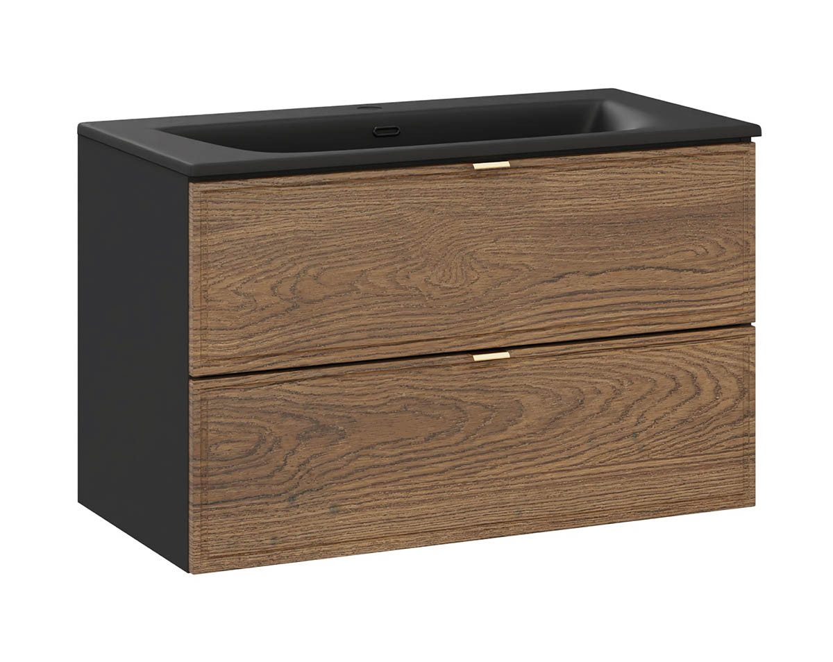 Die "TALINA" Casella-Kollektion vereint klassische Eleganz mit modernem Stil. Die Fronten sind dezent gestaltet mit gefrästen Rahmen in dunklem Casella Eichendekor und spiegeln damit die natürliche Schönheit von Holz wider, während die mattschwarzen Korpusse den Möbeln einen moderne Ausdruck und Stärke verleihen.