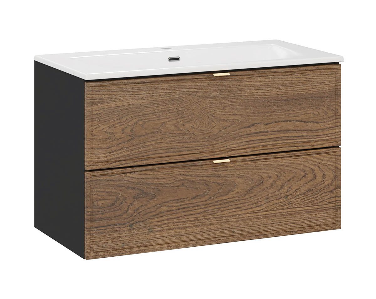 Die "TALINA" Casella-Kollektion vereint klassische Eleganz mit modernem Stil. Die Fronten sind dezent gestaltet mit gefrästen Rahmen in dunklem Casella Eichendekor und spiegeln damit die natürliche Schönheit von Holz wider, während die mattschwarzen Korpusse den Möbeln einen moderne Ausdruck und Stärke verleihen.