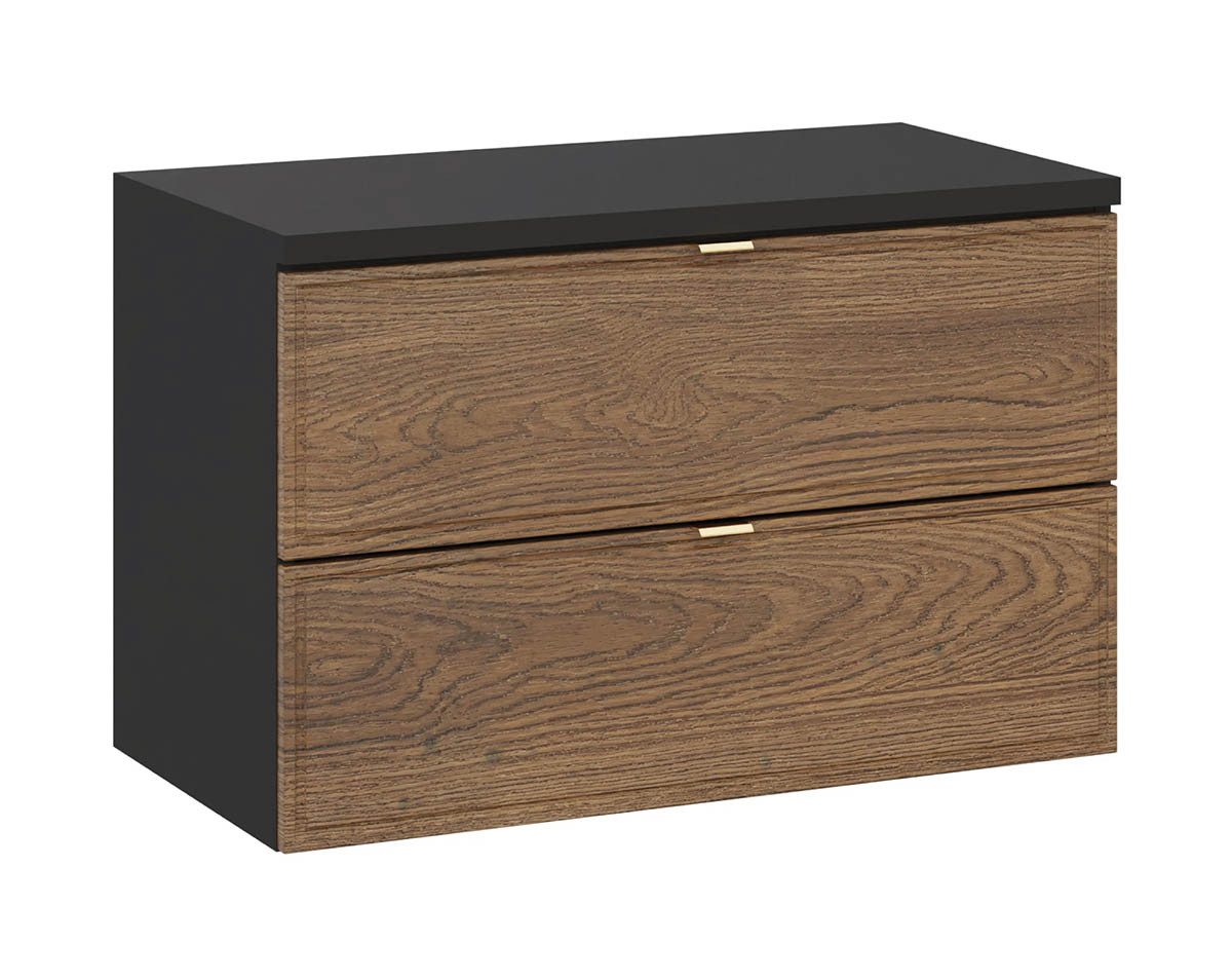 Der Korpus dieses 80cm Waschtisches zum Unterbau ist aus laminiertem Holzwerkstoff, die Fronten aus MDF wurden gefräst. Auch als Set und in unterschiedlichen Вариантыn erhältlich.