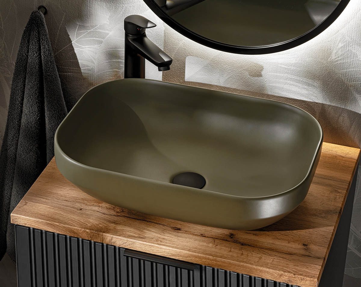 Set beinhaltet | Waschtisch Unterschrank, Oberplatte & Keramikbecken grün matt |
