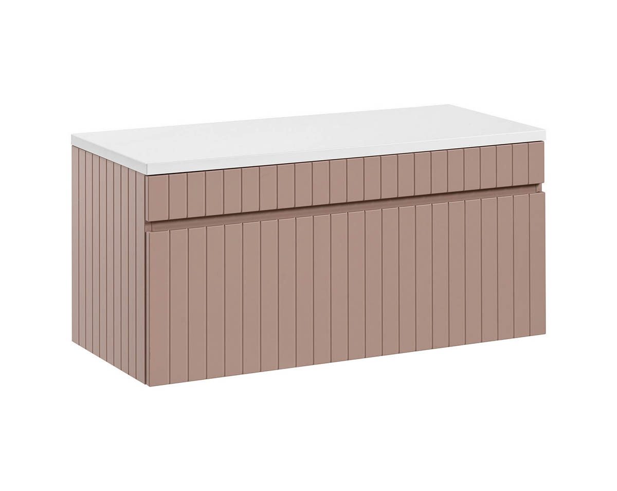 Entdecke die ROSINA Möbelserie fürs Bad. Die gefrästen und beschichteten MDF Fronten präsentieren sich, ebenso wie der glatt folierte Korpus, in einem zarten matten rosé-Farbton. Durch die eingelassenen Griffkanten und das resultierende Fehlen eines Griffes, kommen die schnörkellos-filigran wirkenden Oberflächen perfekt zur Geltung.