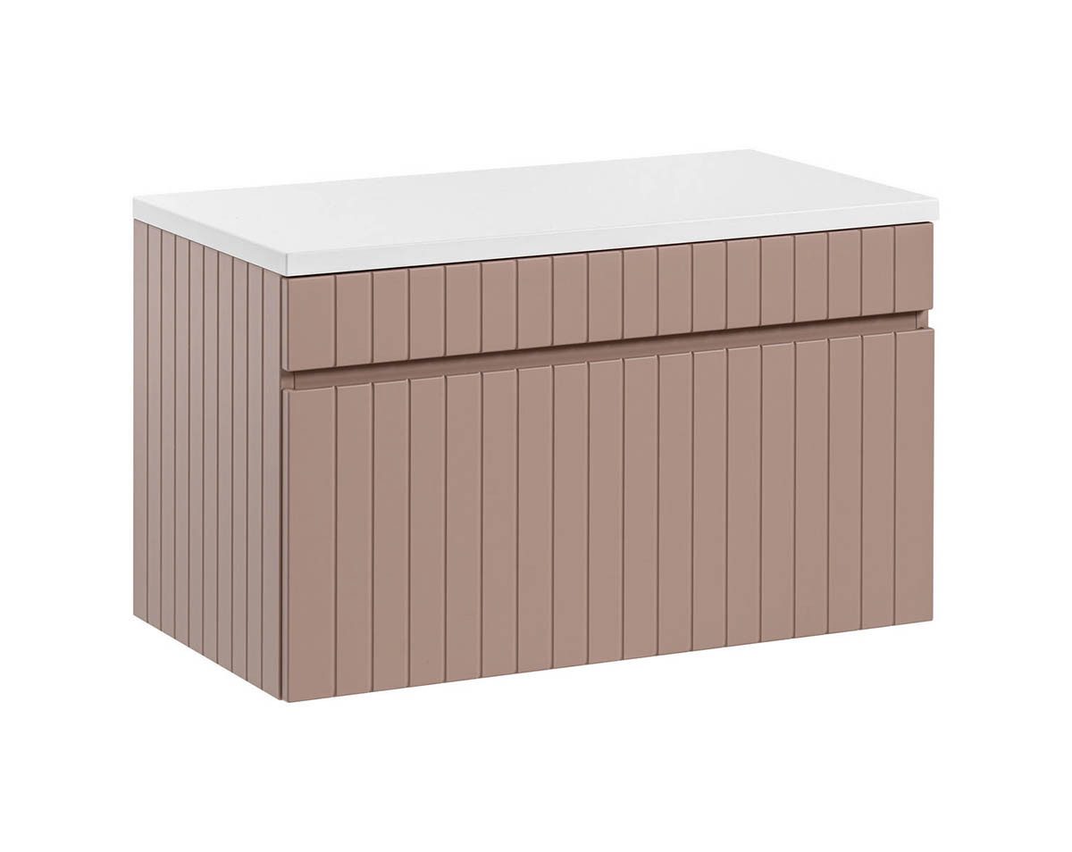 Entdecke die ROSINA Möbelserie fürs Bad. Die gefrästen und beschichteten MDF Fronten präsentieren sich, ebenso wie der glatt folierte Korpus, in einem zarten matten rosé-Farbton. Durch die eingelassenen Griffkanten und das resultierende Fehlen eines Griffes, kommen die schnörkellos-filigran wirkenden Oberflächen perfekt zur Geltung.