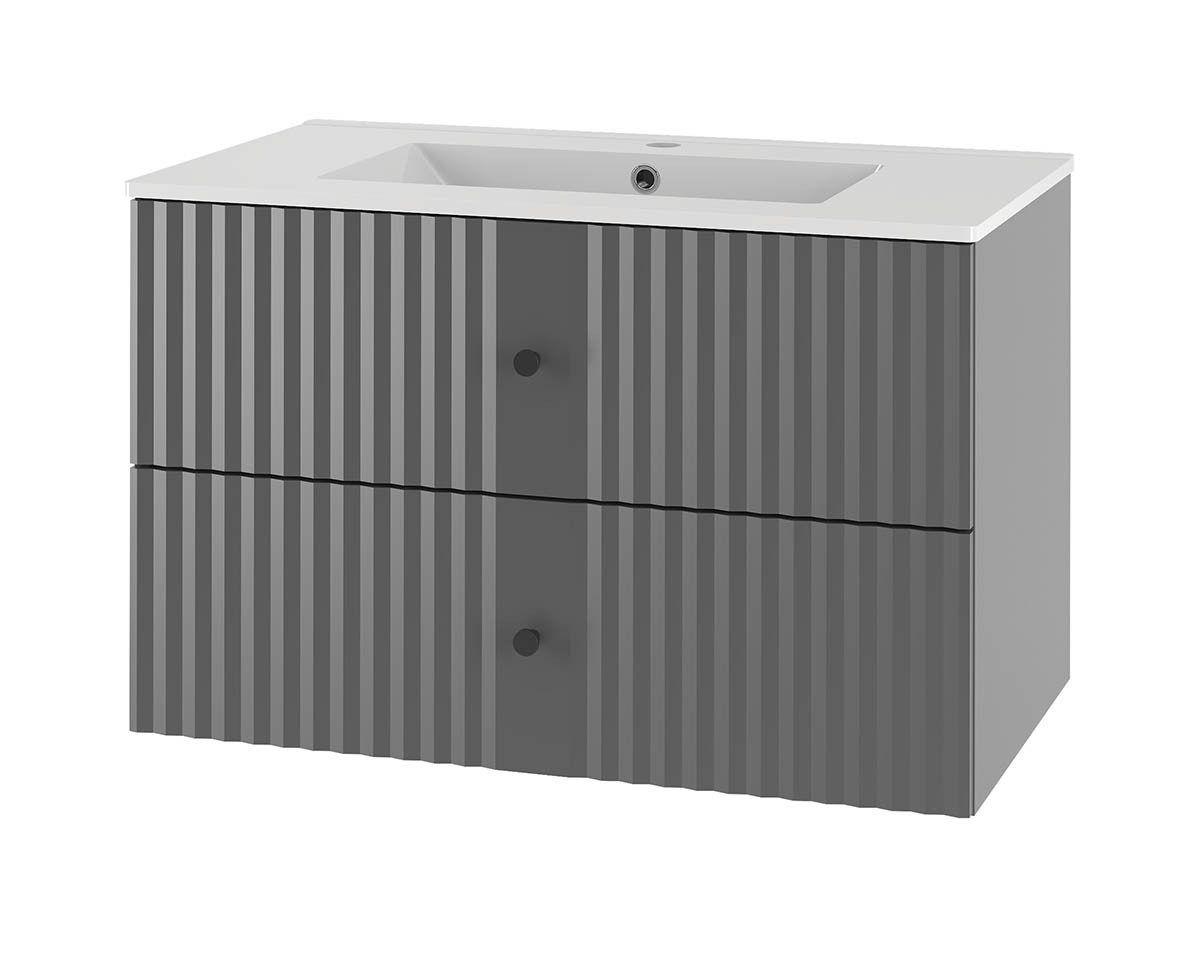Der AshLine Waschtisch 80cm kombiniert minimalistische Formen mit außergewöhnlichem Stil – ideal für alle Bäder. Charakteristisch sind präzise gefräste Fronten mit ruhigem, glattem Mittelbereich: Der elegante “Akkordeon”-Effekt verleiht Struktur, ohne aufzutragen.