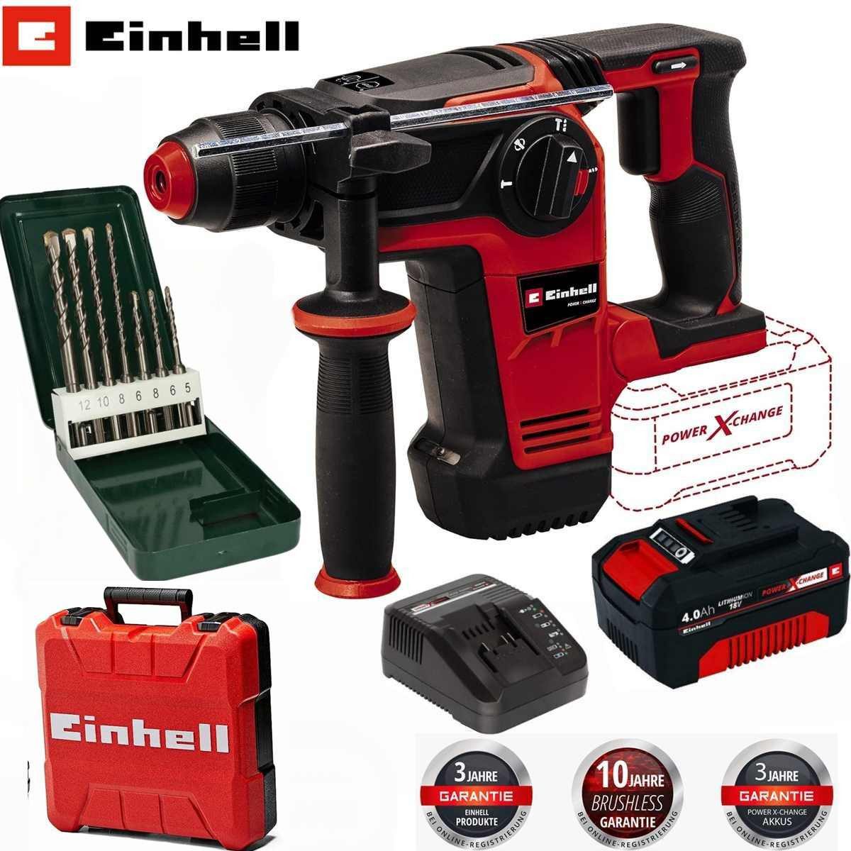Einhell Professional Akku-Bohrhammer TP-HD 18/26 Li BL-Solo Power X-Change 18 V, Brushless, 2,6 J, SDS-plus, pneumatisches Schlagwerk, 4 Funktionen, Koffer, mit Akku 4.0 Ah + Bosch 7tlg.Bohrerset