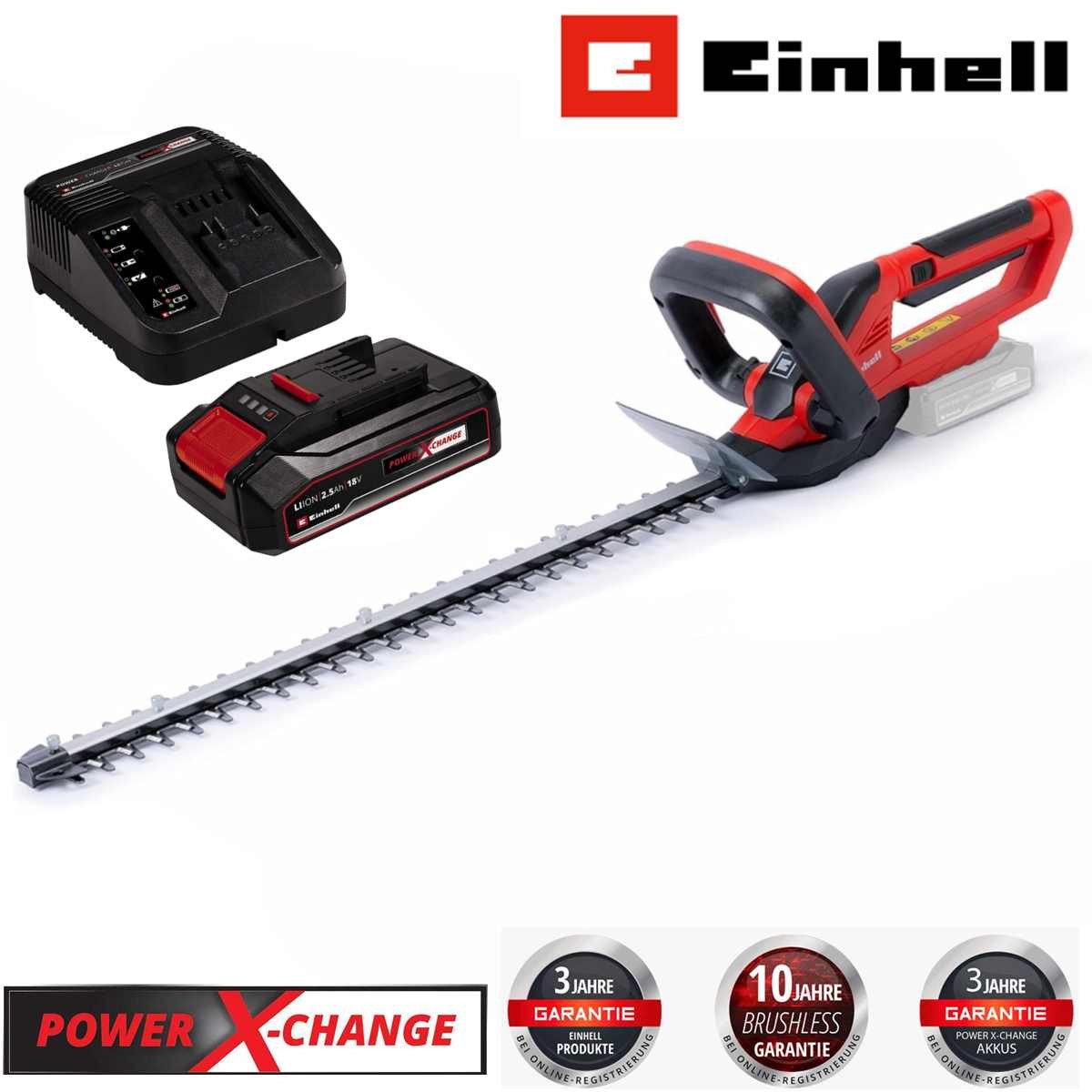 Einhell Akku-Heckenschere GC-CH 1855/1 Li Kit Power X-Change (18 V, 55 cm Schnittlänge, 18 mm Zahnabstand, drehbarer Handgriff, Schnittgutsammler, inkl. 2,5 Ah Akku & Ladegerät)