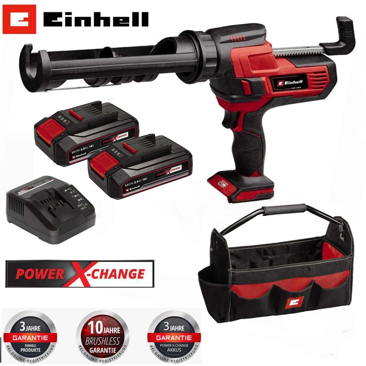 Die Einhell Akku-Kartuschenpistole TE-SG 18/10 Li-Solo ist die ideale Ergänzung zum Basis-Меню in der Werkstatt, aber auch für die Bastel-Stube und insbesondere, wenn regelmäßige Reparaturen oder größere Sanierungs- und Renovierungsarbeiten ins Haus stehen. Als Mitglied der flexiblen Power X-Change-Familie und durch die schlanke Bauform ist die handliche Kartuschenpistole überall dort einsetzbar, wo sie gebraucht wird. Die Akku-Kartuschenpistole ist für alle handelsüblichen 310 ml-Kartuschen geeignet. Die robusten Materialien sorgen für Langlebigkeit auch bei widrigen und regelmäßigen Einsätzen, der Softgrip gewährt einen festen, sicheren Halt im Betrieb. Die Kartuschenpistole verfügt über eine maximale Auspresskraft von bis zu 2.000 N, ein gleichmäßiges Bild ergibt sich durch die regelbare Auspressgeschwindigkeit über ein Stellrad und einen Druckschalter. Die Drehzahl kann durch die individuelle Einstellmöglichkeit an die unterschiedlichen Materialien und Mengen, mit denen gearbeitet wird, angepasst werden. Durch den Rückfahrmechanismus erübrigt sich das Nachtropfen und Verkleben von Oberflächen, auf denen die Pistole abgelegt wird. Das lichtstarke LED-Licht bietet eine optimale Sicht auf den Einsatzbereich, auch in dunklen Bereichen