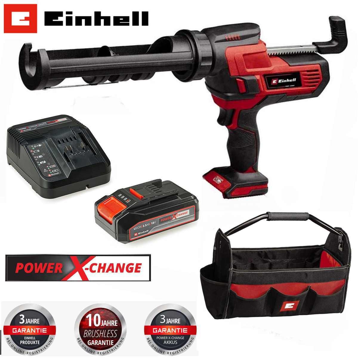 Die Einhell Akku-Kartuschenpistole TE-SG 18/10 Li-Solo ist die ideale Ergänzung zum Basis-Меню in der Werkstatt, aber auch für die Bastel-Stube und insbesondere, wenn regelmäßige Reparaturen oder größere Sanierungs- und Renovierungsarbeiten ins Haus stehen. Als Mitglied der flexiblen Power X-Change-Familie und durch die schlanke Bauform ist die handliche Kartuschenpistole überall dort einsetzbar, wo sie gebraucht wird. Die Akku-Kartuschenpistole ist für alle handelsüblichen 310 ml-Kartuschen geeignet. Die robusten Materialien sorgen für Langlebigkeit auch bei widrigen und regelmäßigen Einsätzen, der Softgrip gewährt einen festen, sicheren Halt im Betrieb. Die Kartuschenpistole verfügt über eine maximale Auspresskraft von bis zu 2.000 N, ein gleichmäßiges Bild ergibt sich durch die regelbare Auspressgeschwindigkeit über ein Stellrad und einen Druckschalter. Die Drehzahl kann durch die individuelle Einstellmöglichkeit an die unterschiedlichen Materialien und Mengen, mit denen gearbeitet wird, angepasst werden. Durch den Rückfahrmechanismus erübrigt sich das Nachtropfen und Verkleben von Oberflächen, auf denen die Pistole abgelegt wird. Das lichtstarke LED-Licht bietet eine optimale Sicht auf den Einsatzbereich, auch in dunklen Bereichen