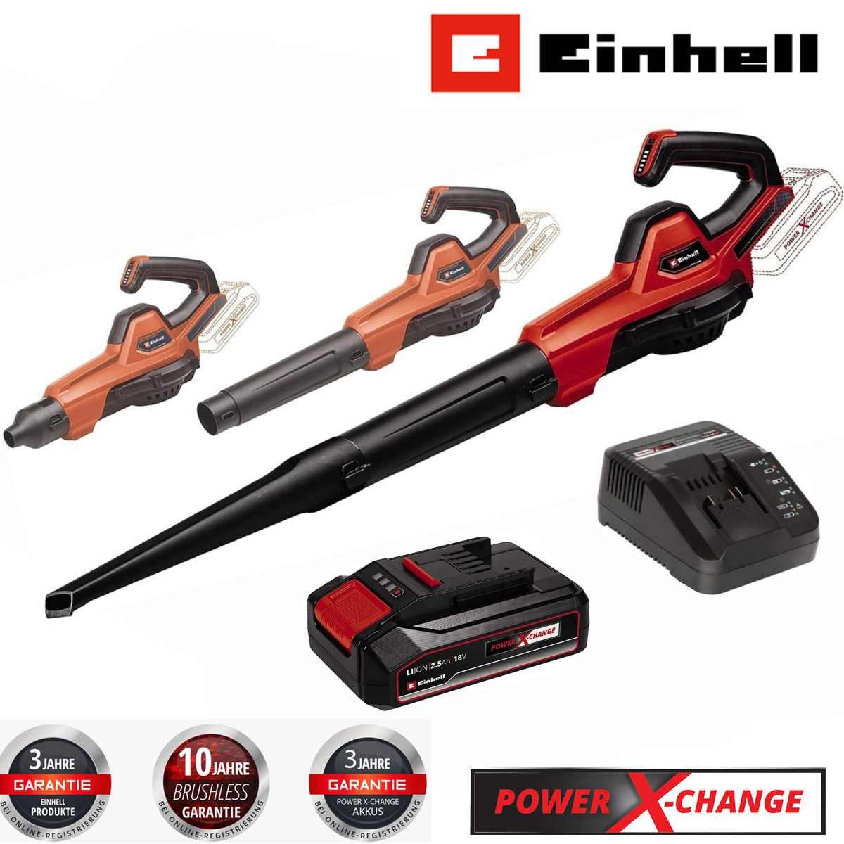 Einhell Akku-Universalbläser GE-UB 18/250 Li E Power X-Change (18 V, 250 km/h Luftgeschwindigkeit, 3-tlg. Rohr, elektr. Drehzahlregelung mit LED-Anzeige, mit Akku 2.5 Ah / Ladegerät)