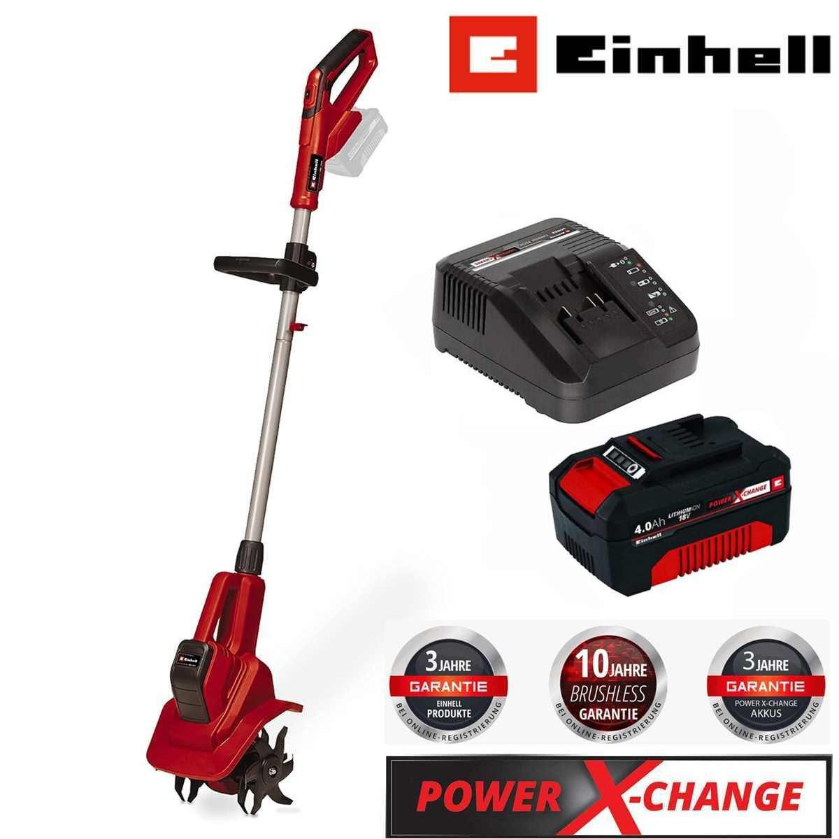 Einhell Akku-Bodenhacke GE-CR 18/20 Li E-Solo Power X-Change (18 V, Li-Ion, elektronische Drehzahlregulierung, 4 Hackmesser, Zusatzhandgriff, mit Akku 4.0 Ah und Ladegerät)