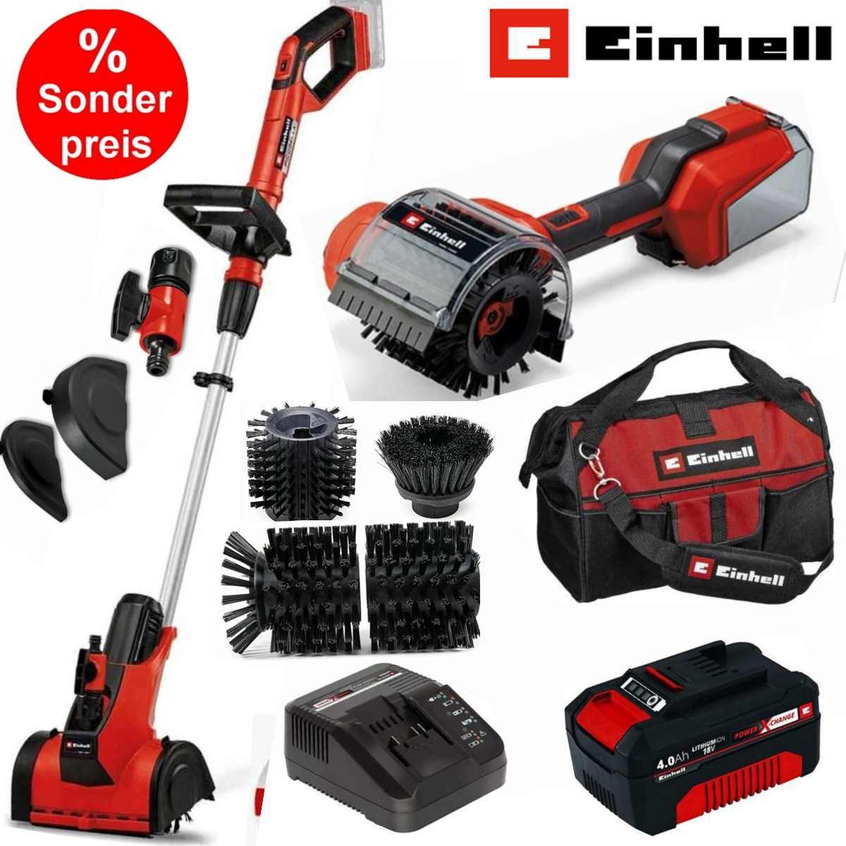 Artikelbeschreibung Die Einhell PICOBELLA 18/215 und 18/90 Akku-Oberflächenbürste ist ein multifunktioneller Helfer zur Reinigung und Erfrischung von Steinoberflächen, Holz, Kunstrasen als auch Ecken und Kanten. Die PICOBELLA 18/215 befreit glatte, rauhe und sensible Flächen z.B. von Grünspan und Moos. Als Mitglied des grenzenlos untereinander kombinierbaren Akkusystems Power X-Change kann jeder Systemakku mit der PICOBELLA 18/215 kombiniert werden. Als Akku-Gerät ist die PICOBELLA 18/215 rund um Haus und Garten flexibel einsetzbar – ohne von Stromquellen abhängig zu sein. Der integrierte Gartenschlauchanschluss ermöglicht eine einfache Nassreinigung in nur einem Arbeitsschritt für eine gründliche Reinigung. Dabei kann man den Wasserverbrauch dank inkludiertem Regulierventil nach Bedarf einstellen. Der Bürstenwechsel erfolgt werkzeuglos auf Knopfdruck. Eine spezielle Seitenbürste ist für randnahes Arbeiten bis an die Kante geeignet. Die umlaufende Spritzschutzhaube lenkt den Schmutz in geregelte Bahnen. Extra breite rotierende Bürstenwalzen sorgen für schnelle Resultate. Durch den flexiblen Vorwärts-/Rückwärtslauf der Bürste können maximale Ergebnisse bei einer ruhigen Bürstenführung erzielt werden. Die stufenlose Drehzahlregulierung sorgt dabei für ein Plus an Flexibilität. Das höhenverstellbare Aluminiumrohr kann individuell eingestellt werden für rückenschonendes Arbeiten. Zudem verfügt die PICOBELLA 18/215 über einen ergonomischen Handgriff mit Softgrip und einen Zusatzhandgriff mit praktischer integrierter Gartenschlauchführung.