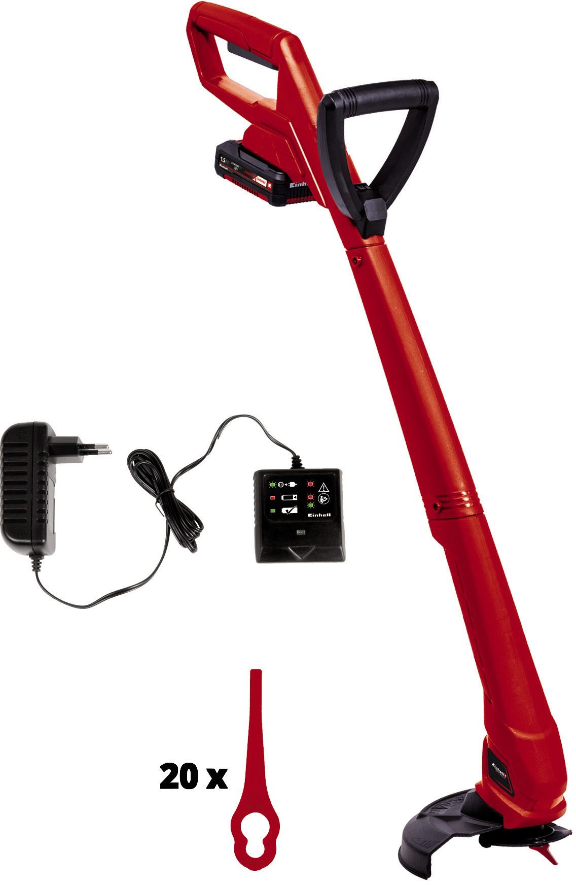 Lieferumfang | Akku-Rasentrimmer, 20 Stück Kunststoffmesser, 1,5 Ah Akku, Ladegerät Ersatzmesser Ladegerät |