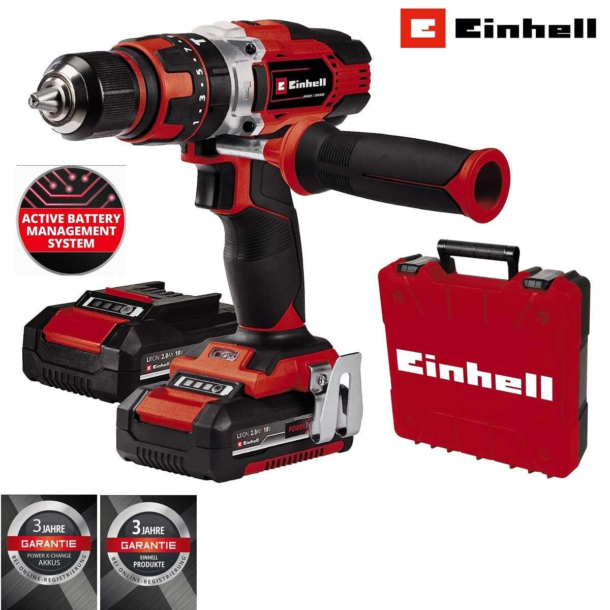 Umfangreiches Zubehör im Lieferumfang enthaltenDie Lieferung des hochwertigen Akku-Schlagbohrschraubers von Einhell erfolgt im praktischem Transport- und Aufbewahrungskoffer. Mit zum Lieferumfang gehören zwei 2,0 Ah Power X-Change- Akkus, wodurch ein langes und unabhängiges Arbeiten möglich ist, da bei Bedarf die Akkus einfach gewechselt werden können. Ein nützlicher Gürtelclip gehört mit zur Ausrüstung, an ihm kann der Akku-Schlagbohrschrauber sicher zwischengelagert werden, falls das Gerät vom Anwender gerade nicht benötigt wird.