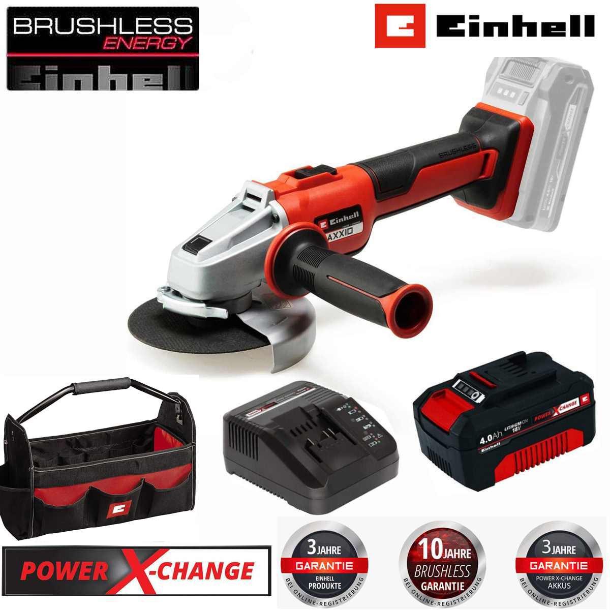 Der Einhell Professional Akku-Winkelschleifer AXXIO 18/125 Q bewährt sich als Helfer bei Arbeiten in Werkstatt, Haus und Garage. Kraftvoll, kabellos und komfortabel, das sind die Prädikate, auf die bei der Konzeption hoher Wert gelegt wurde. Der Winkelschleifer ist Mitglied der Power X-Change-Familie, bei der der Akku in allen Geräten der Systemreihe verwendet werden kann. Optimale Ergebnisse liefern der 2,5 Ah Akku und leistungsstärkere Akkus der Serie. Angetrieben wird das Gerät von dem Einhell PurePOWER Brushless Motor für mehr Kraft und längere Laufzeit. Nach Online-Registrierung gelten 10 Jahre Garantie auf den Motor. Dank seines leistungsstarken Motors liefert der Akku-Winkelschleifer die gleiche Leistung wie ein entsprechendes kabelgebundenes Gerät mit 700 W. Softstart und Wiederanlaufschutz dienen der erhöhten Anwendersicherheit. Angenehm arbeiten lässt es sich durch die schlanke Bauform mit ergonomischem Softgrip und Zusatzhandgriff. Die Entkoppelung von Motor und Getriebe sorgt für eine hohe Laufruhe. Der Scheibenschutz mit Schnellverstellung ermöglicht flexibles Arbeiten. Der Zusatzhandgriff ist flexibel in zwei Positionen montierbar. Mit der Quick-Fix Nut wird kein Stirnlochschlüssel mehr für den Trennscheiben-Wechsel benötigt: Der Wechsel erfolgt schnell und werkzeuglos. Der Akku-Winkelschleifer ist mit einem Überlastschutz ausgestattet. Auf Langlebigkeit wurde mit dem robusten Aluminium-Getriebegehäuse geachtet.