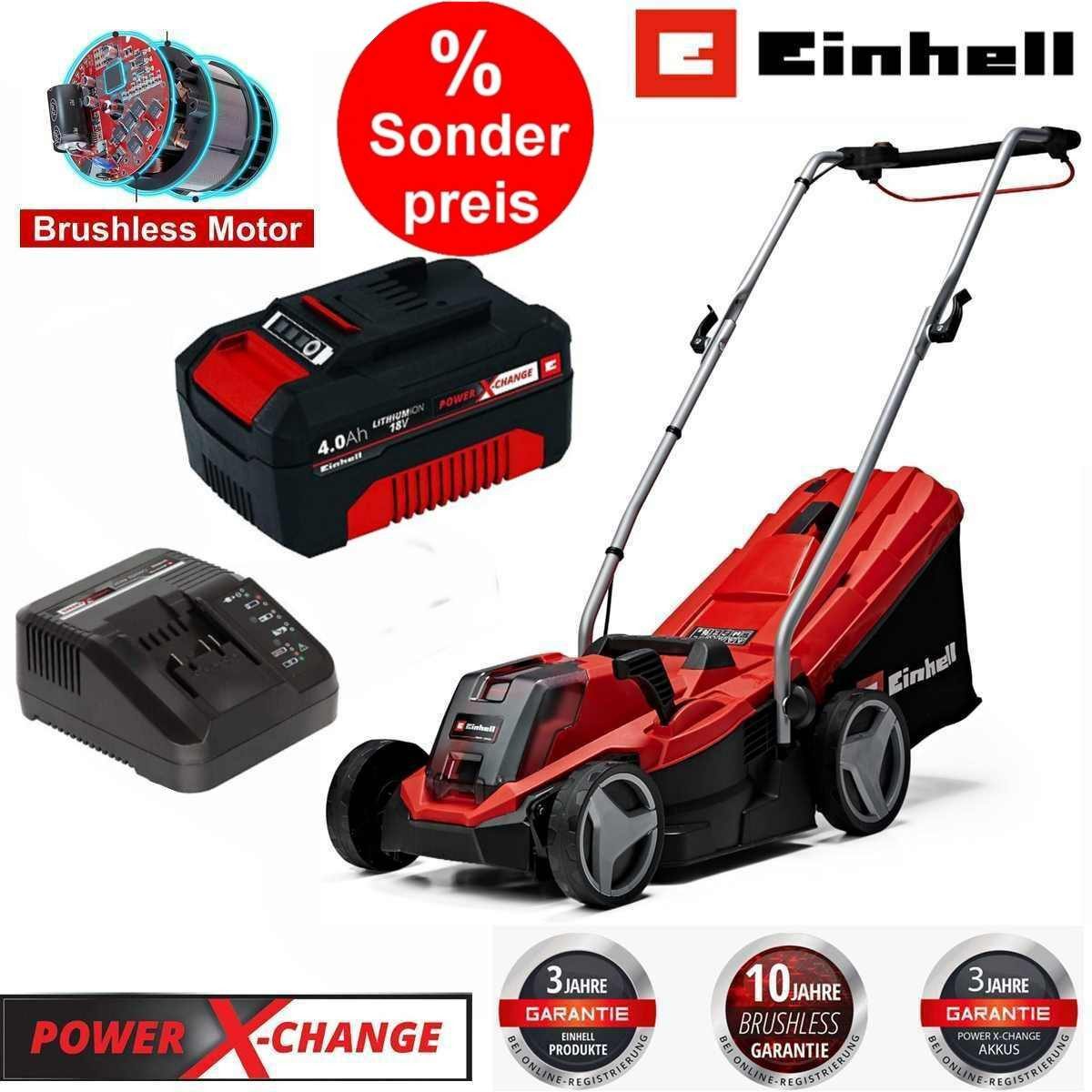 Einhell Akku-Rasenmäher GE-CM 18/33 Li-Solo Power X-Change (18 V, 33 cm Schnittbreite, bis 200 m², Brushless, 30L Grasfangkorb, 25-65 mm Schnitthöhe, ohne Akku)
