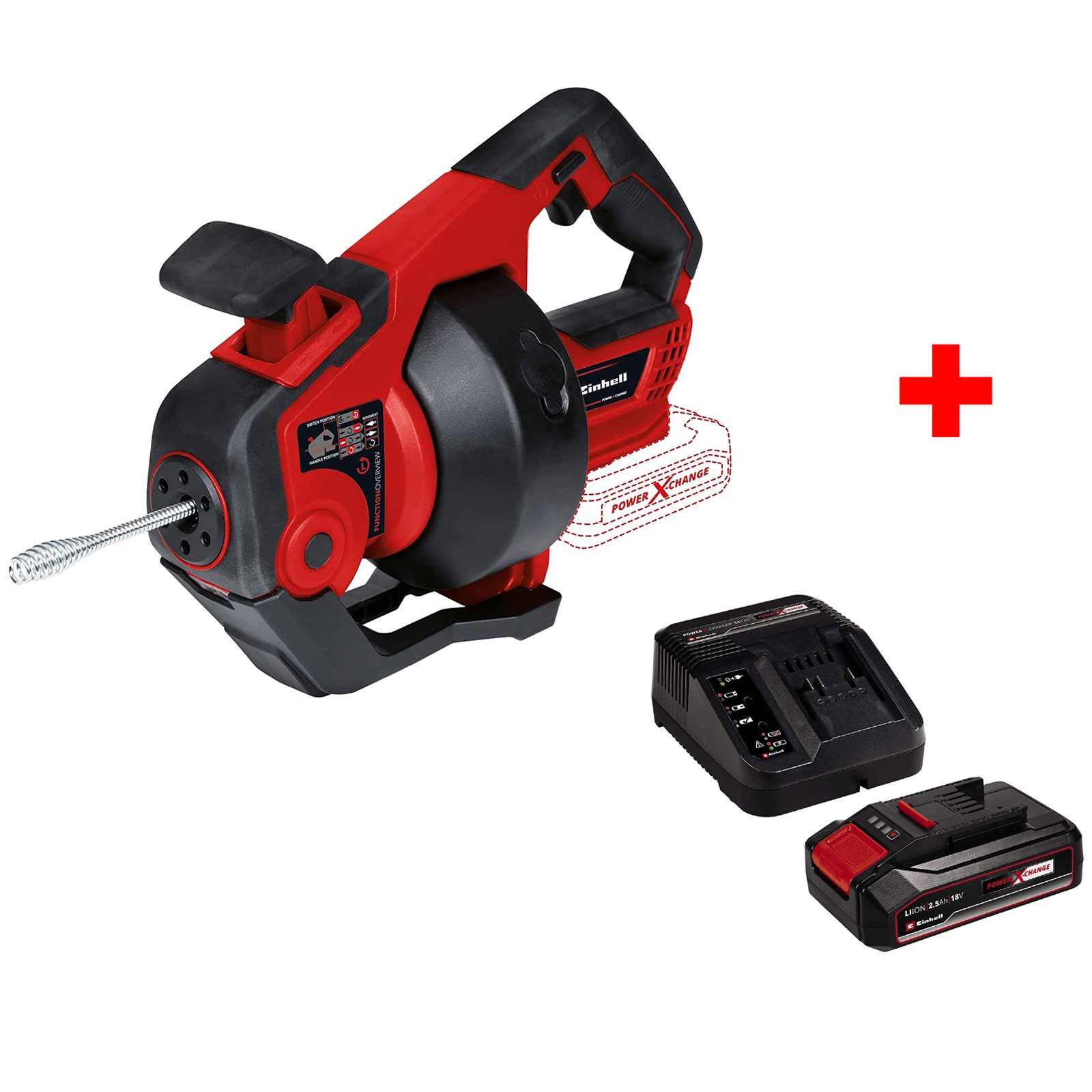 Einhell Akku Rohrreiniger Spirale TE-DA 18/760 Li-Solo Power X-Change + 2,5 Ah Akku + Ladegerät
