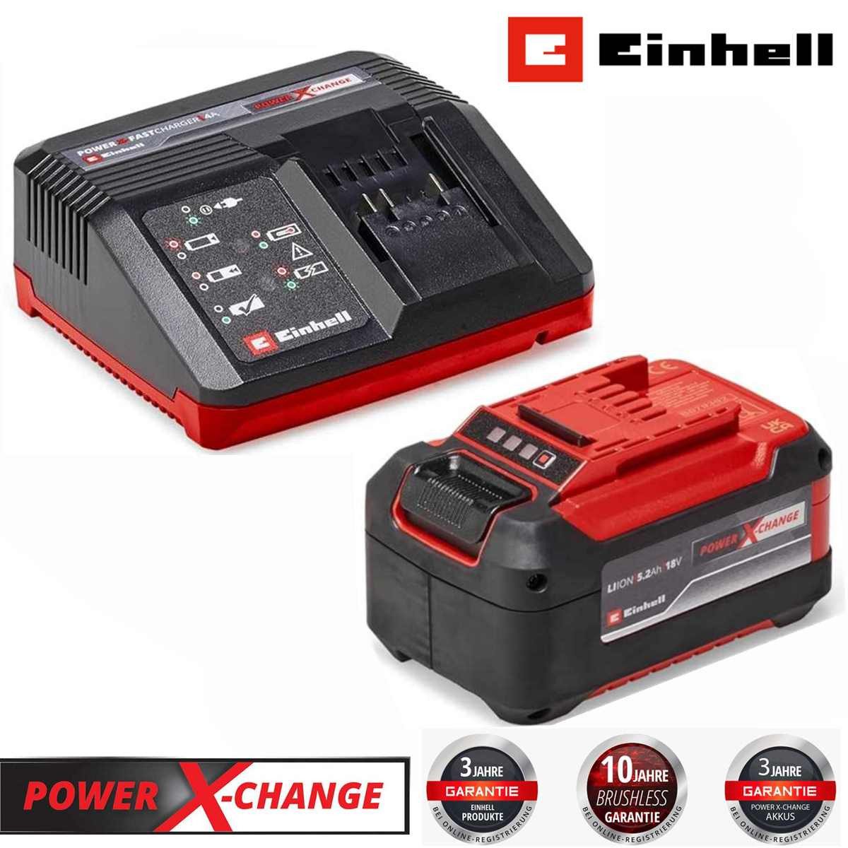Original Einhell Starter Kit 5,2 Ah Akku und Fastcharger Power X-Change (Li-Ion, 18 V, 80 min Ladezeit, passend für alle Power X-Change Geräte)