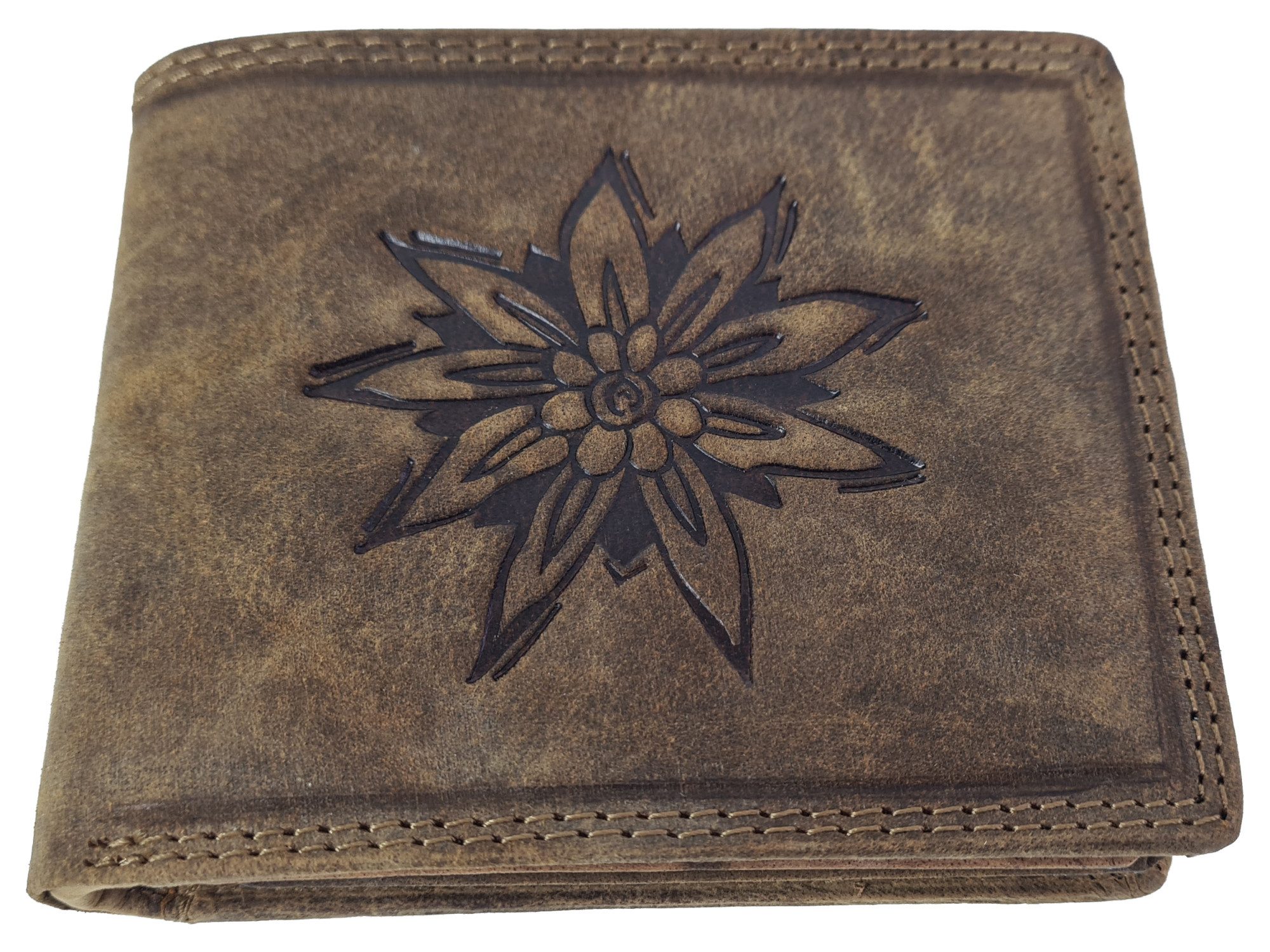 Dieser Geldbeutel ist das richtige Geschenk für jeden Lederhosenträger oder Jäger. Aus echtem Büffel-Leder gefertigt in einer wunderschönen naturbraunen Farbe, die perfekt zu Lederhose und Tracht passt. Das Leder ist naturbelassen und rustikal. Es wurde nicht mit Plastikfarbe überzogen, wie es bei vielen Lederartikeln heutzutage geschieht. Hier haben Sie noch das wirklich reine natürliche Leder in der Hand. Durch doppelte Nähte hält er viel besser und länger als andere. Die Einteilung bei diesem Geldbeutel ist sensationell umfangreich. Zwei Geldscheinfächer und ein Münzenfach. 3 durchsichtige Fotofächer. Sage und schreibe 9 genähte Kartenfächer und 1 verdecktes Dokumentenfach. Dazu ein Reißverschlussfach. Zudem ist der Geldbeutel durch eine innen verarbeitete Metallfolie RFID gesichert - Pech gehabt, Datendieb... Die Размер beträgt 12x10 cm. Material: 100% Rindsleder (Taurinus). Damit werden Sie lange Zeit Ihre wahre Freude haben. Dieser Geldbeutel wurde in liebevoller Handarbeit gefertigt. Das hier verwendete Leder ist einmalig und nicht zu kopieren. Kein Stück gleicht dem anderen. Kleine natürliche Hautmarkierungen oder geringe farbliche Schattierungen sind keine Qualitätsmängel, sondern unterstreichen die Echtheit des beliebten Naturproduktes LEDER.