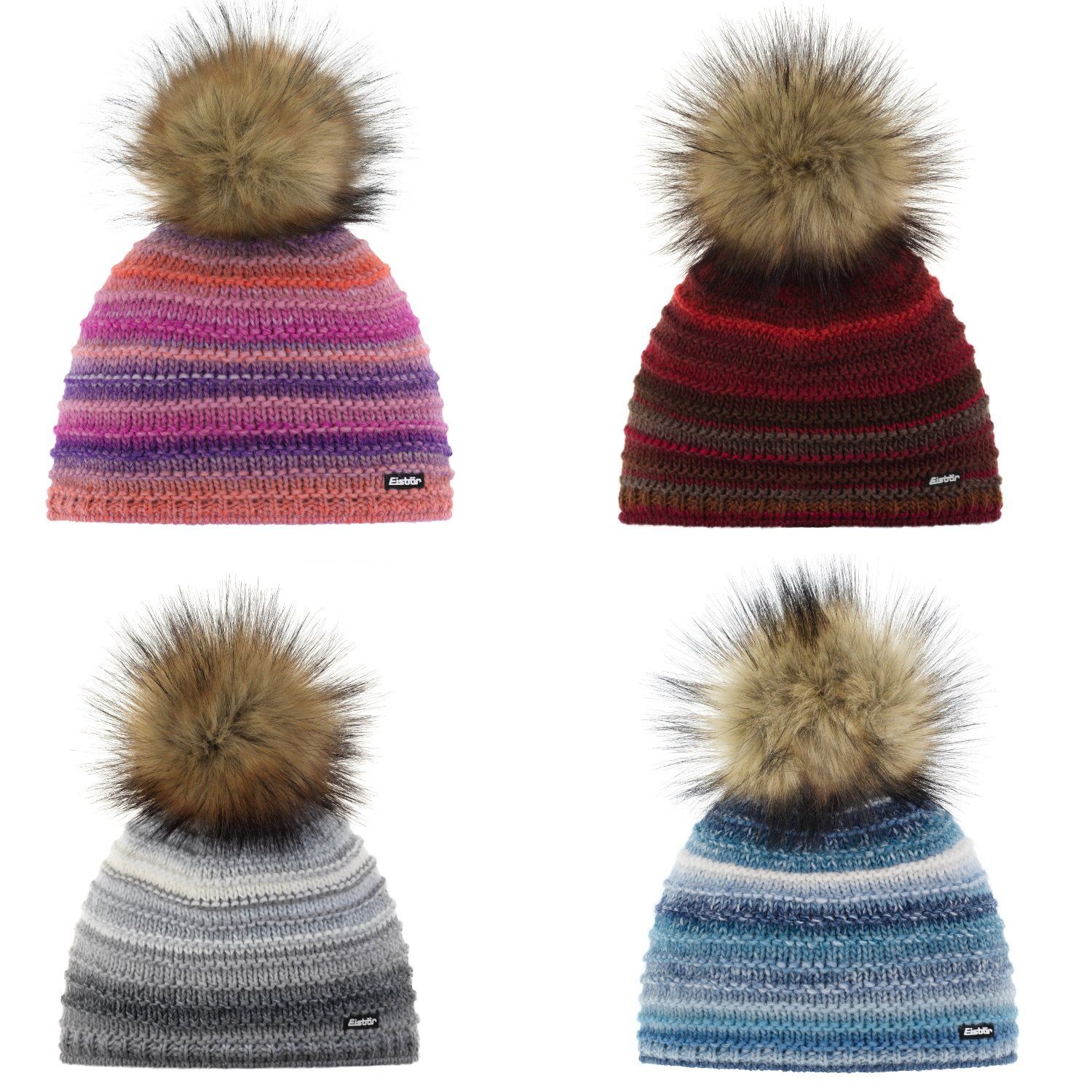 Eisbär Strickmütze für Damen mit Kunstfellbommel.