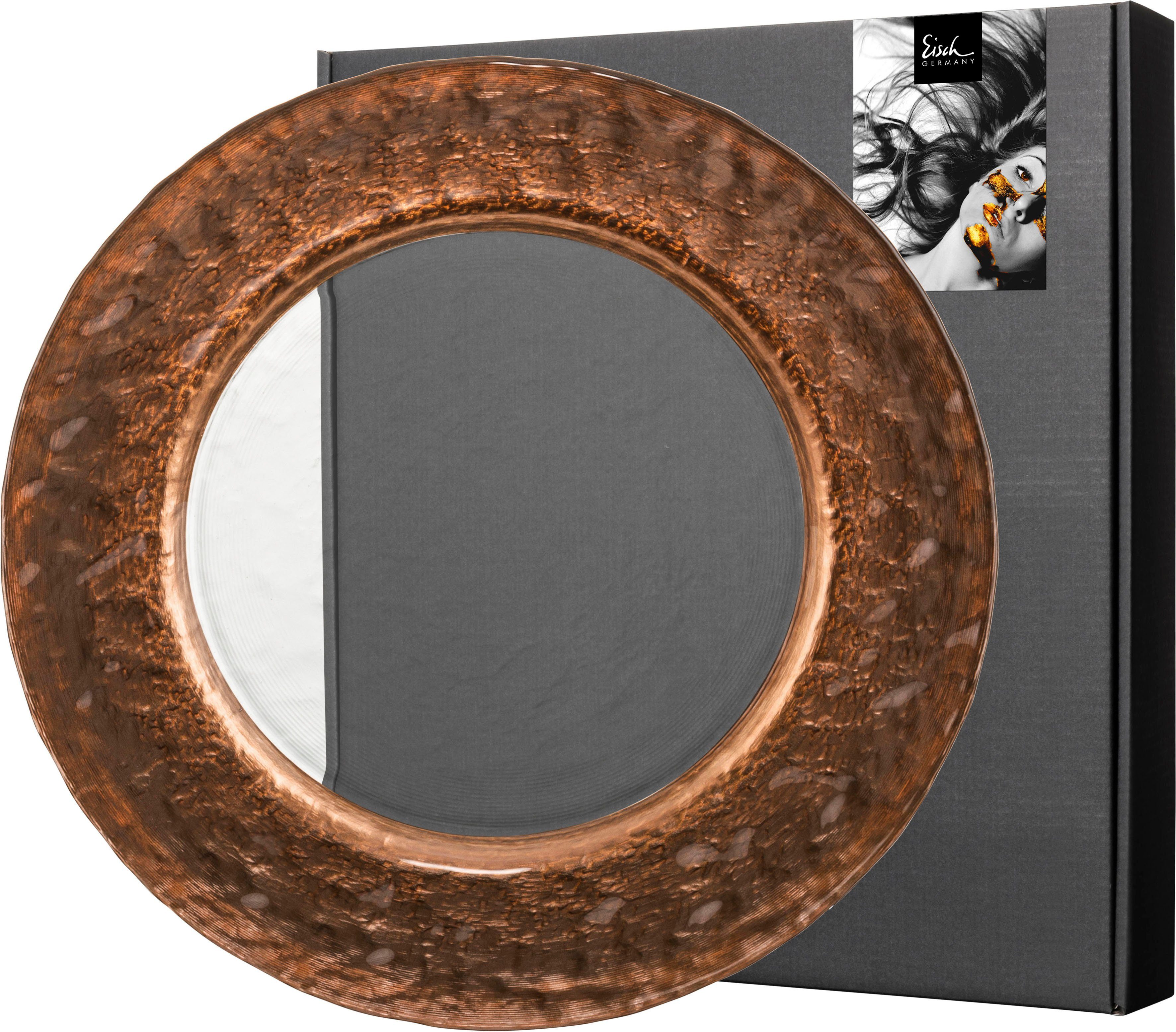 In der Serie KAYA lassen sich charaktervoller Schiefer und fein schimmerndes Kupfer beliebig miteinander kombinieren und unterstreichen einen modernen Lebensstil. KAYA wird in der Glashütte EISCH in Handarbeit veredelt. Optik und Haptik verleihen dem Interieur eine dezent-kostbare Note. Setzen Sie elegante Akzente auf Ihrem Tisch! Arrangieren Sie auf dem Teller KAYA stilvoll Desserts, Salate oder andere feine Speisen oder verwenden Sie ihn als Platzteller. Die Teller mit eingearbeiteter Struktur werden in der Glashütte Eisch im Kupfer-Look in reiner Handarbeit veredelt. Die Teller sind spülmaschinengeeignet. 1 handveredelter EISCH Teller KAYA kupfer zum stilvollen Servieren von Desserts, Salaten, etc. Die Strukturästhetik der Teller KAYA wird ergänzt durch die Veredelung im Kupfer-Look. Der Durchmesser des Tellers beträgt 340mm. GESCHENKIDEE: Der Teller KAYA ist eine tolle Geschenkidee für alle, die Tischkultur schätzen oder hochwertige Geschenke suchen für Geburtstage, Muttertag, Vatertag, Weihnachten. EISCH GERMANY wird bereits in 3. Generation im Herzen des Nationalparks Bayerischer Wald familiengeführt und steht als traditionsreiche Glasmarke seit 1946 für die Gestaltung von Glas als kreativen Bestandteil der Tischkultur auf höchstem Niveau. AUSGEZEICHNETES DESIGN- Das Design der hochwertigen Produkte von EISCH GERMANY wurde mehrfach bestätigt mit Auszeichnungen wie dem Tableware International Award of Excellence, dem Tischkulturpreis Dineus und dem Manufakturprodukt des Jahres.