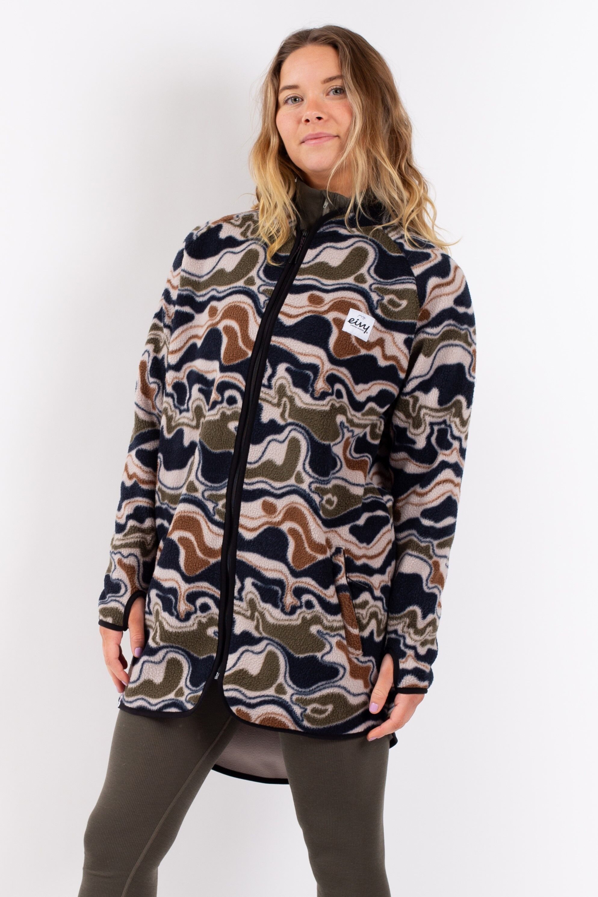 Weitgeschnittener, oversized Fleece Sweater mit YKK® Reißverschluss Kragen, Logopatch auf der Brust, Ärmeldetails, Daumenschlaufen und einer versteckten Brusttasche. Aus 100% GRS recyceltem Polyester. Designed in Åre, Schweden.