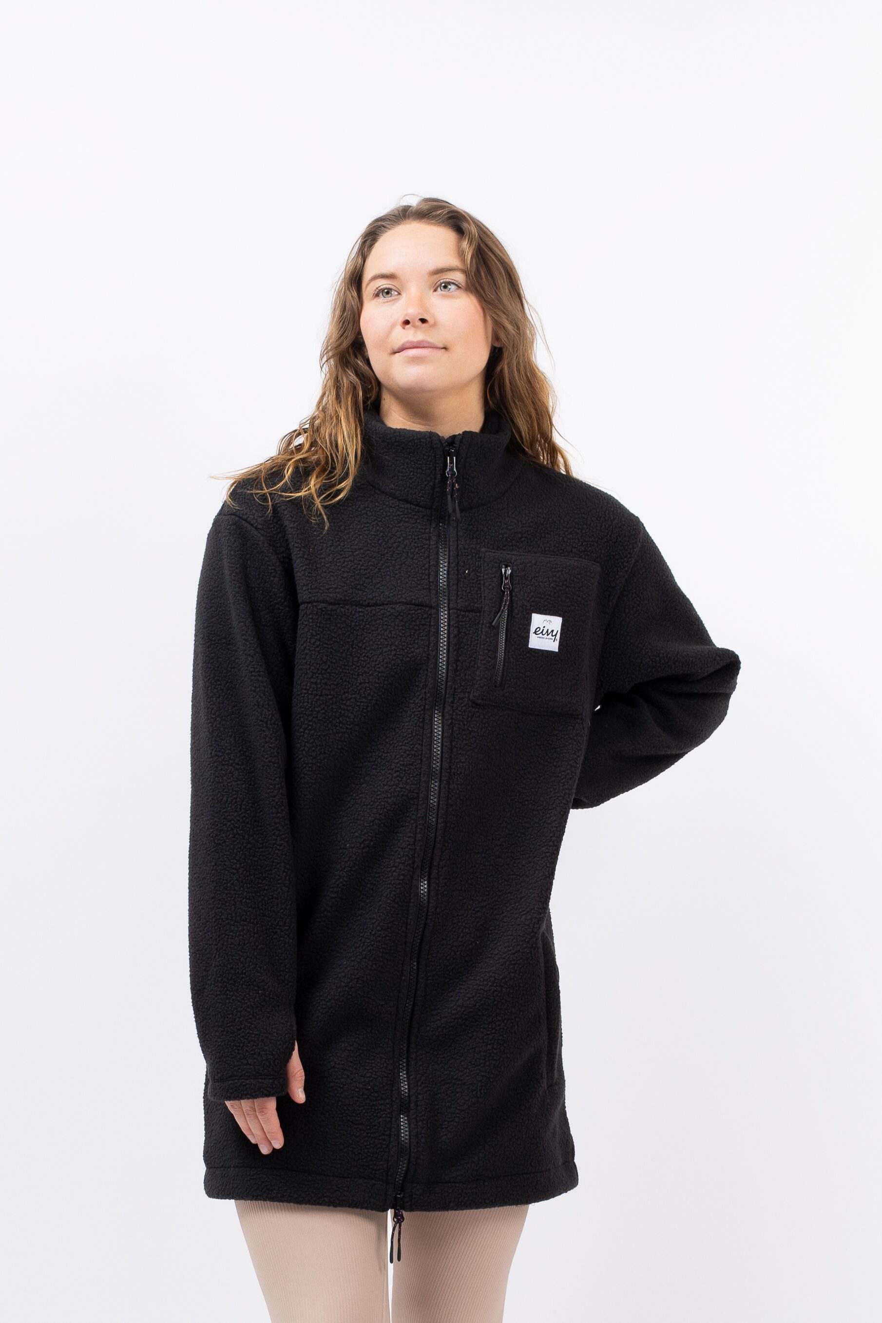 Dicke, weiche und warme Sherpa-Fleecemantel und Zwischenschicht. YKK™-Brustreißverschluss in zwei Richtungen, Seiten- und Brusttaschen mit Reißverschluss, gewebter Aufnäher und leicht abfallende Schultern. Integrierte Daumenschlaufen und elastischer Kordelzug für die Taillenregulierung, mittleres bis schweres Stoffgewicht und die Vielzahl an Funktionen machen diesen Mantel zu einem vielseitigen Mid- und Outerlayer für Herbst, Winter und Frühling. In klassischem schwarz gehalten, überzeugt dieser Look mit purer Schlichtheit und maximaler Kombinierbarkeit – ideal für alle, die auf klare Linien und zeitlosen Stil setzen. Entwickelt in Åre, Schweden, von Snowboarderinnen, Skifahrerinnen und Reisenden.
