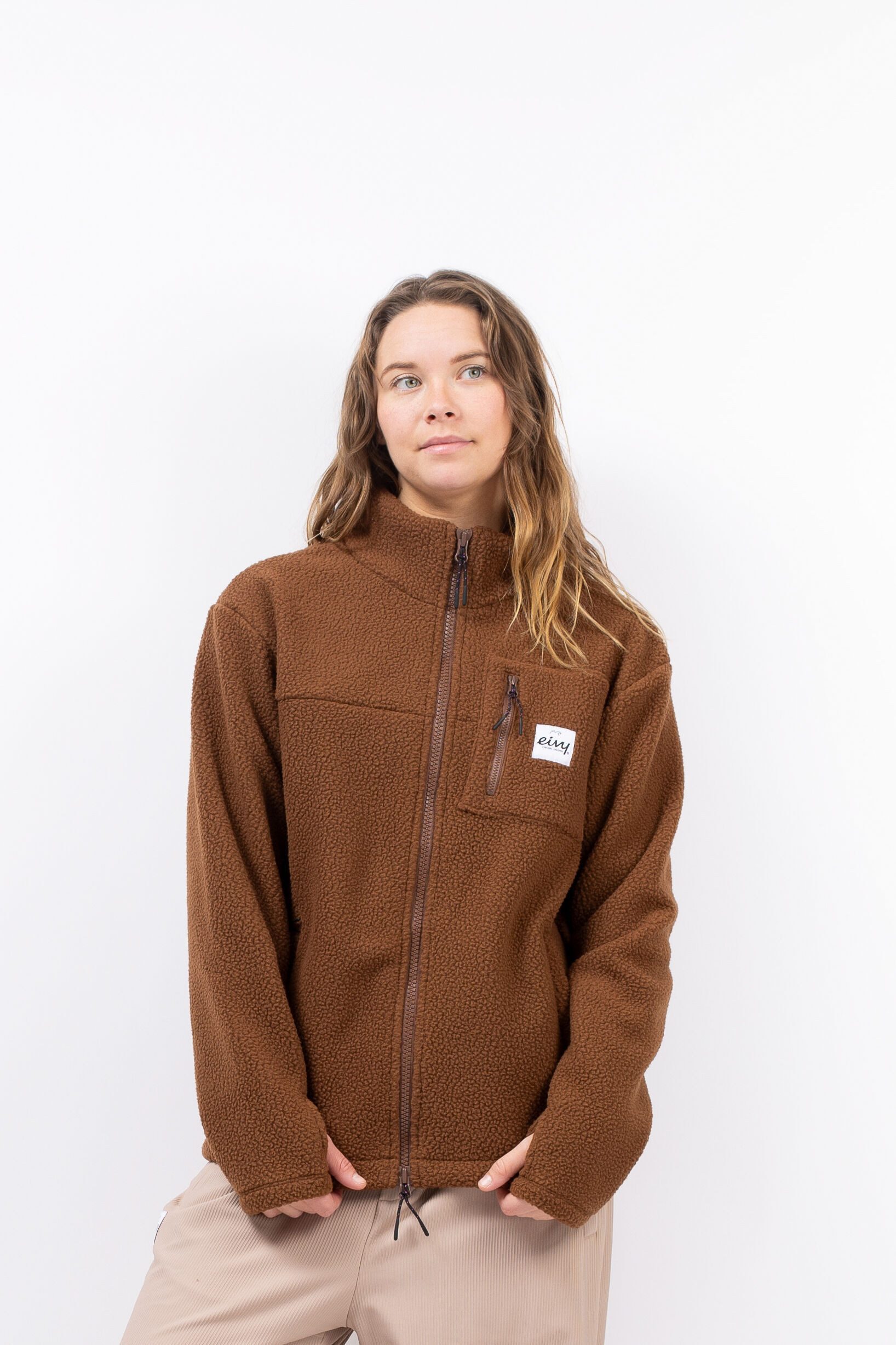 Dicke, weiche und warme Sherpa-Fleecejacke und Zwischenschicht. YKK™-Brustreißverschluss in zwei Richtungen, Seiten- und Brusttaschen mit Reißverschluss, gewebter Aufnäher und leicht abfallende Schultern. Integrierte Daumenschlaufen und ein elastischer Kordelzug zur Taillenregulierung. Die warme, erdige Farbgebung „Brown“ sorgt für einen natürlichen, stilsicheren Look – perfekt für alle, die klassische Töne mit funktionaler Performance verbinden möchten. Das mitteldicke bis dicke Material und die Vielzahl an Funktionen machen diese Jacke zu einem großartigen Teil für Herbst und Frühjahr sowie zu einer wirklich warmen Zwischenschicht. Entwickelt in Åre, Schweden, von Snowboarderinnen, Skifahrerinnen und Reisenden.