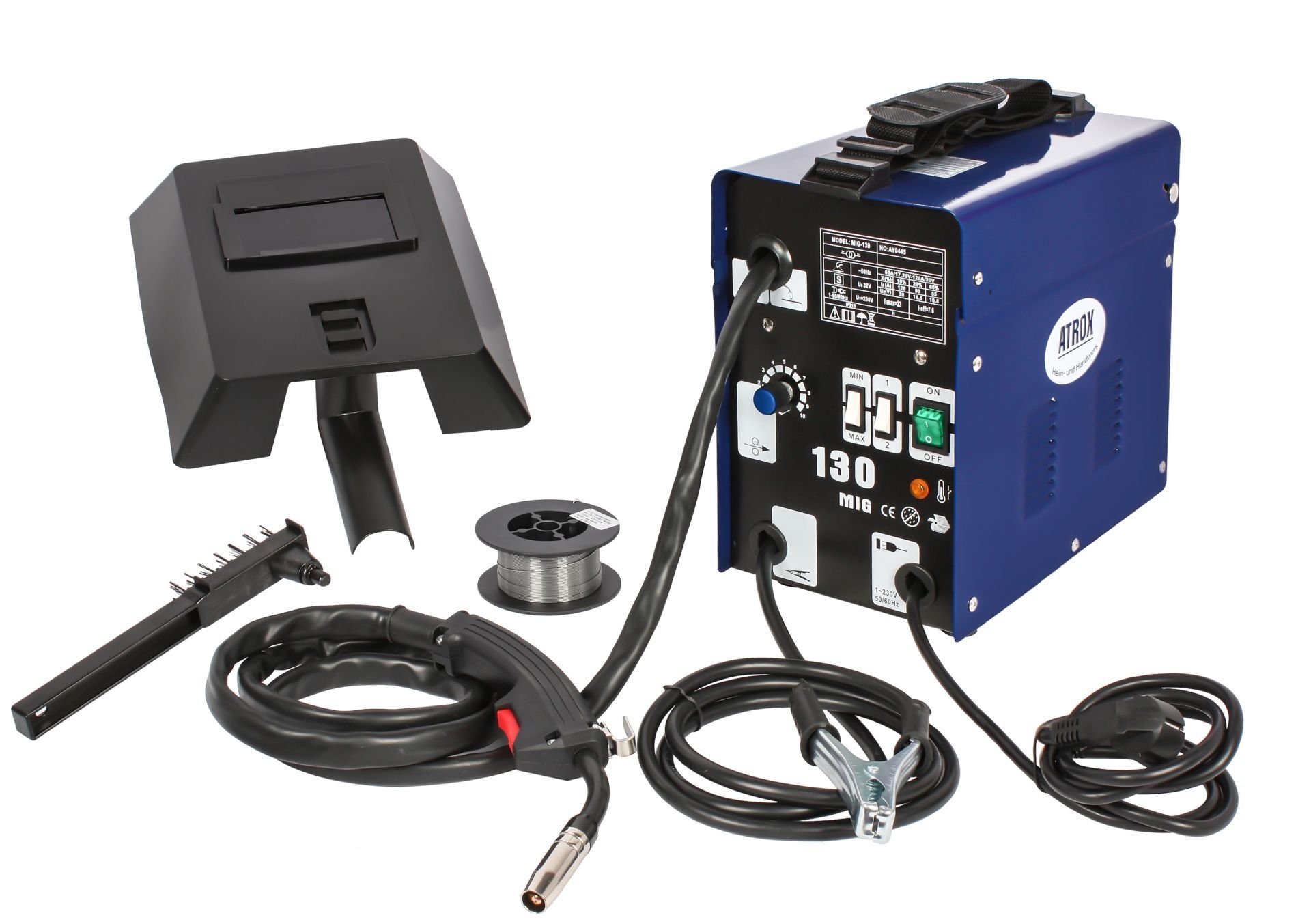 Lieferumfang | Massekabel mit -klemme, Schweißkabel mit Elektrodenhalter, Hammer/Bürste, Schweißmaske, 250 g Fülldraht |
